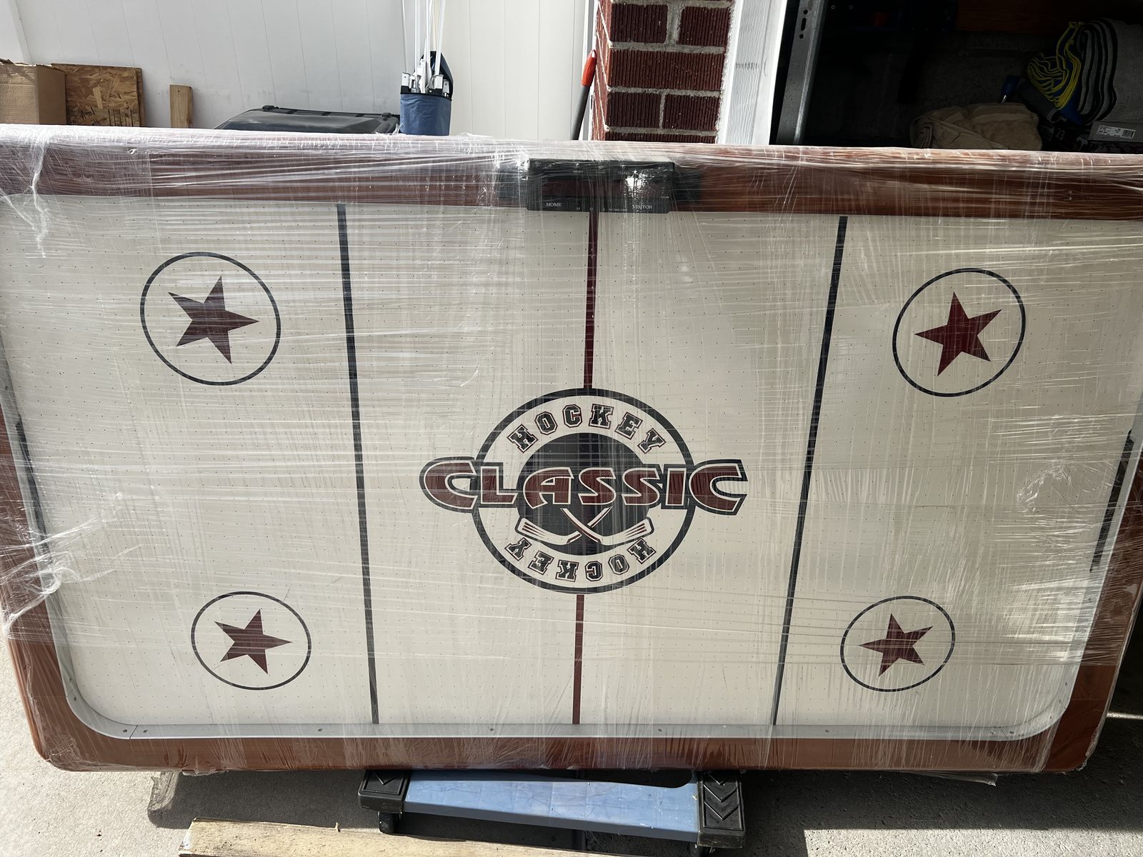 Lightly used air hockey table, I don’t have much info on it, it was purchased awhile back and been covered in storage since. 7ft x 4ft everything works great!
