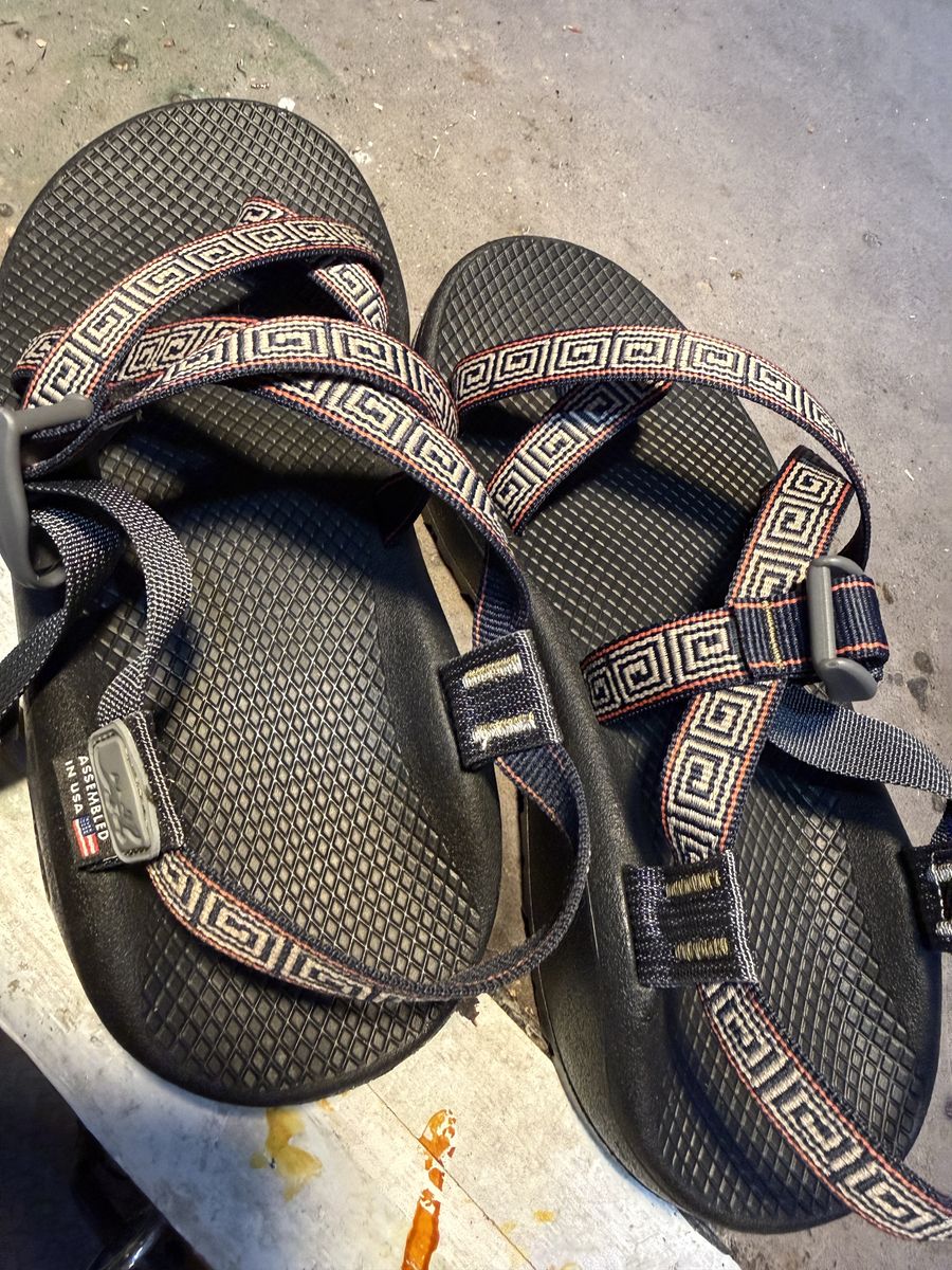 If you like, Chaco‘s, these are great. They have the cushioned footbed and toe strap. I put one of them on and realized they were too big and otherwise have not worn them at all. Only one of them has touched the ground.