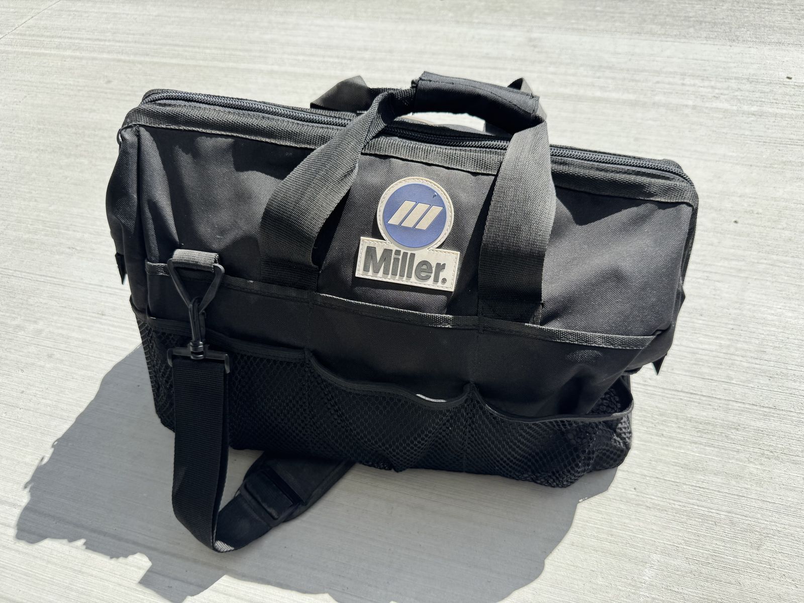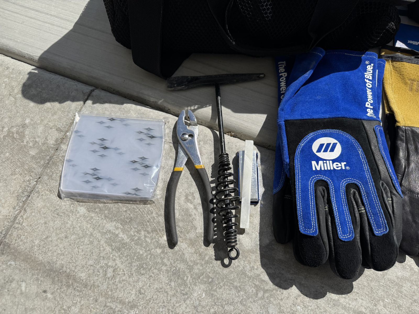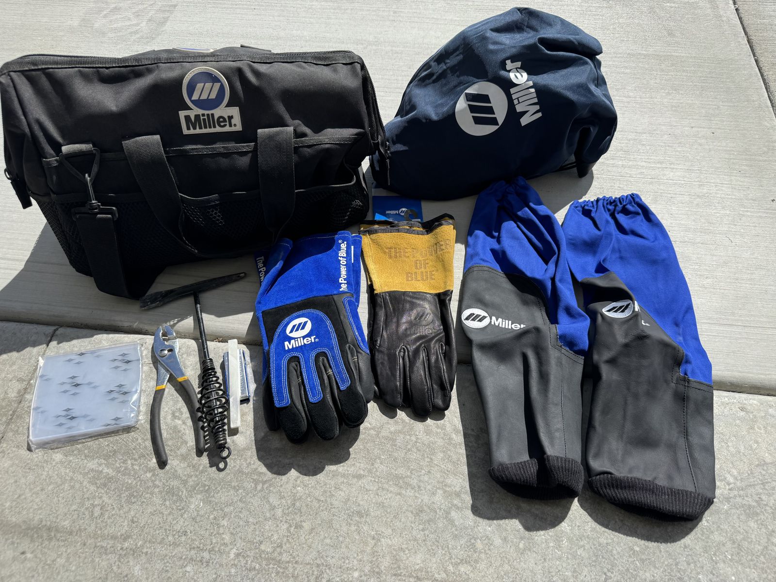 This is a sweet auto darkening welding helmet. The design is called Vintage Roadster. Miller tool bag, miller gloves 2 pairs XL, miller combo leather welding sleeves, misc small tools (picture) everything is like new or new. This is a sweet setup very lightly used for welding school. The value of this package is almost $600. Text with any questions. Pickup in Tremonton.