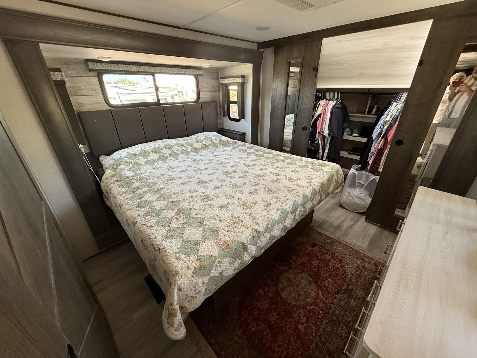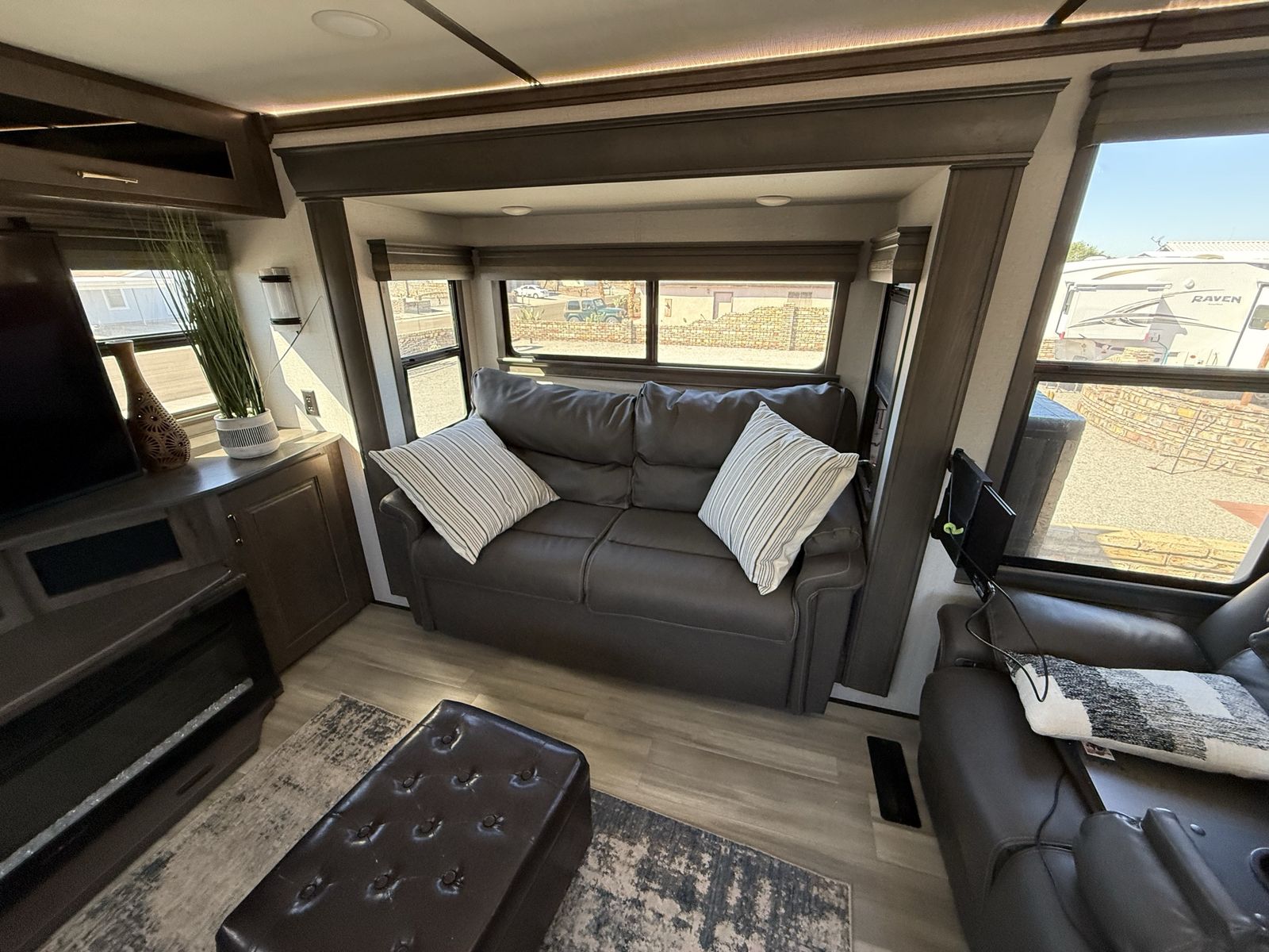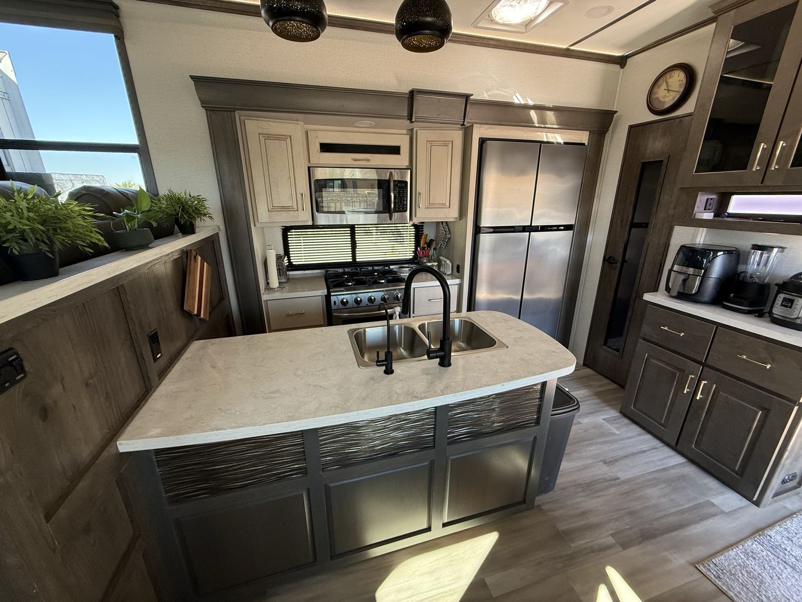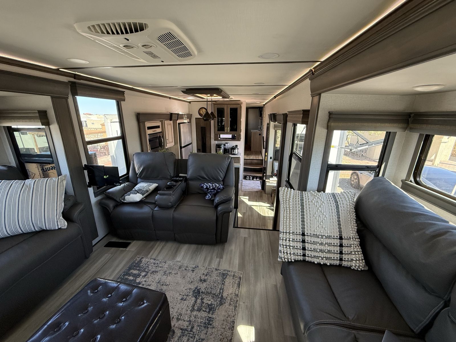This 5th Wheel is designed for full time living and has many features for comfort and convenience along with an unbelievable amount of storage. The upgrades to this unit include, Winegard Traveler automatic satellite dish and hopper receiver, built-in Reverse Osmosis system, 3ea 300 watt solar panels w/3,000 watt inverter, Lithium batteries, Rear view camera, Rear stabilizer, 5th wheel tripod stabilizer, Superglide hitch for short bed pickups, Water Softener, Adjustable water pressure regulator, Outdoor plastic carpets, Closet motion lights, Telescoping flag pole, extra hoses, storage containers. Will deliver Salt Lake to Las Vegas.