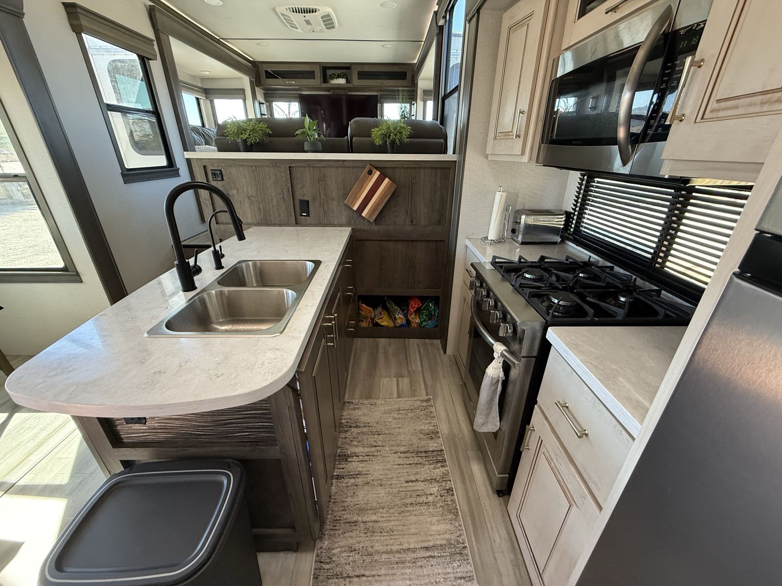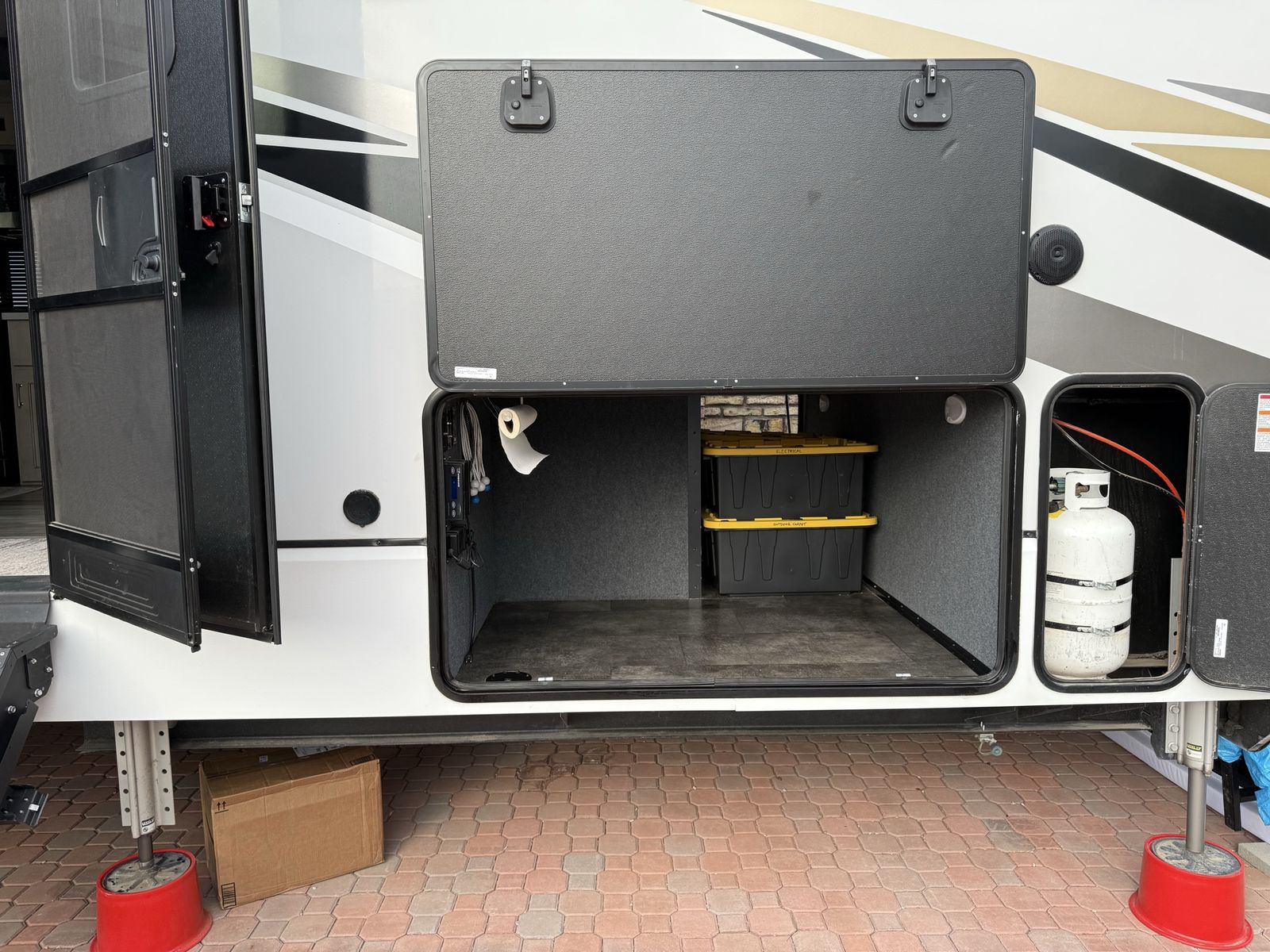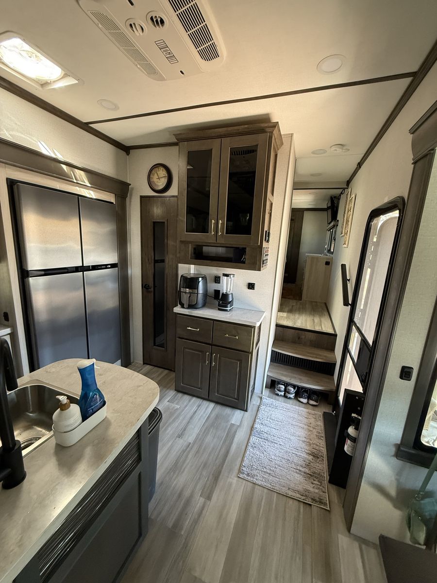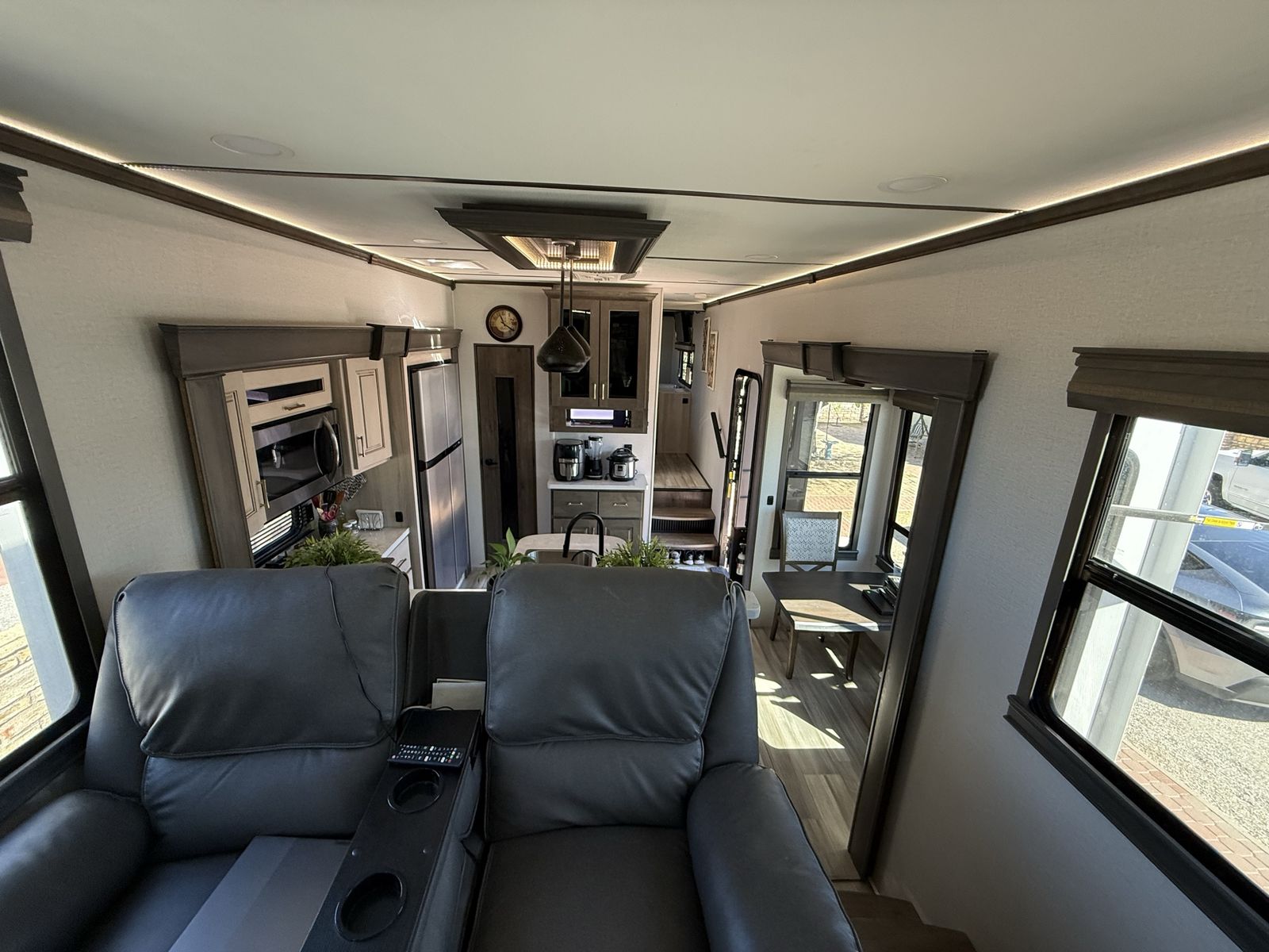 This 5th Wheel is designed for full time living and has many features for comfort and convenience along with an unbelievable amount of storage. The upgrades to this unit include, Winegard Traveler automatic satellite dish and hopper receiver, built-in Reverse Osmosis system, 3ea 300 watt solar panels w/3,000 watt inverter, Lithium batteries, Rear view camera, Rear stabilizer, 5th wheel tripod stabilizer, Superglide hitch for short bed pickups, Water Softener, Adjustable water pressure regulator, Outdoor plastic carpets, Closet motion lights, Telescoping flag pole, extra hoses, storage containers. Will deliver Salt Lake to Las Vegas.
