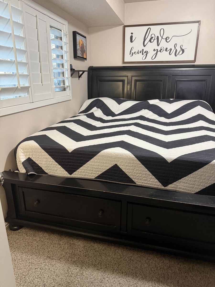 VenmoThis bed has been amazing. It is solid wood and has two big drawers at the base for storage. We purchased it from vintage Oak in Salt Lake. There is some damage that I have documented in the pictures… Thanks to some puppies. Please let me know if you have any questions. The bed is taken apart and ready to be hauled off.