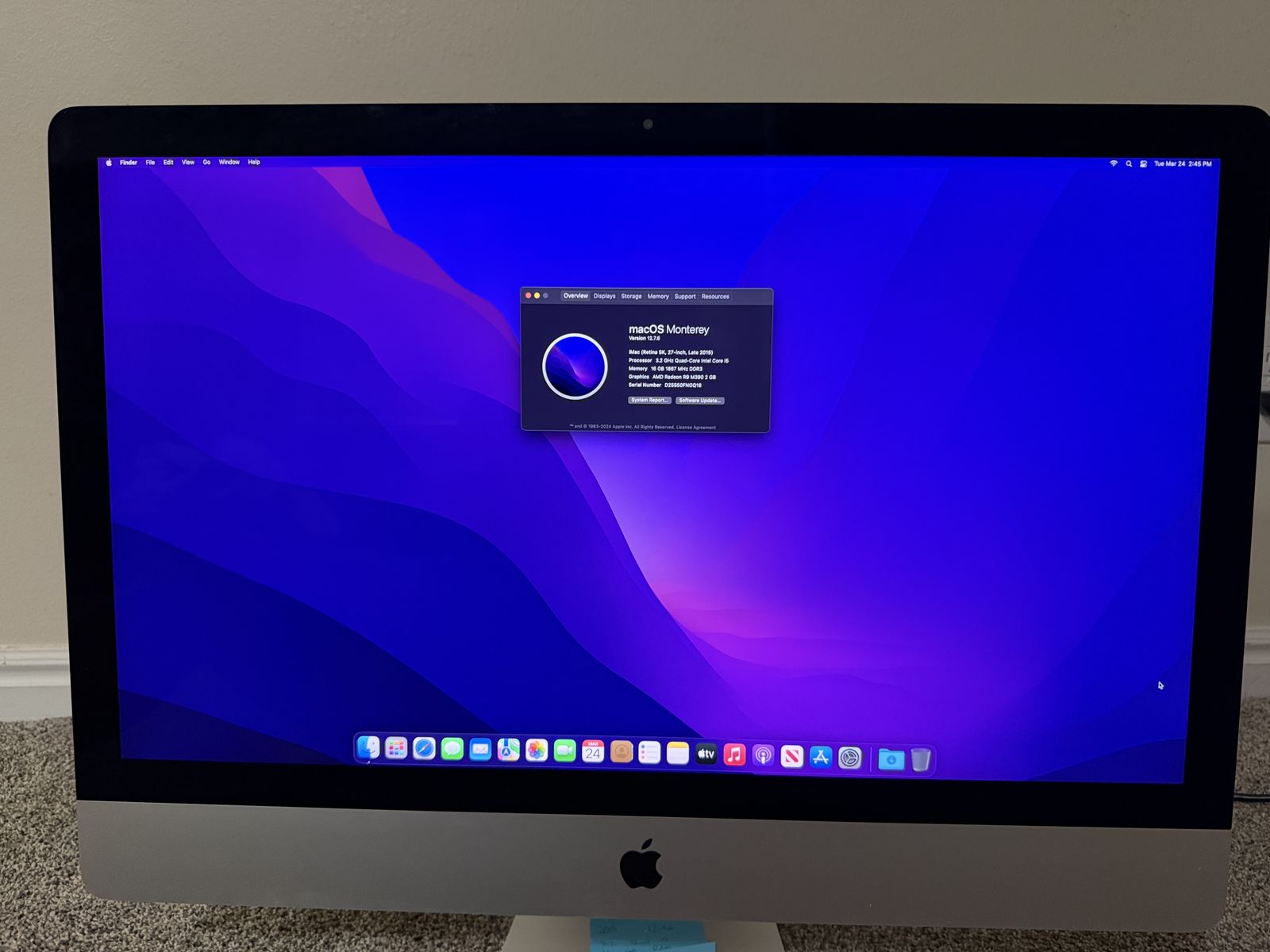 Venmo3.2 GHz quad core i5 16 GB RAM 2 GB Radeon R9 M390 GPU 1 TB Fusion Drive