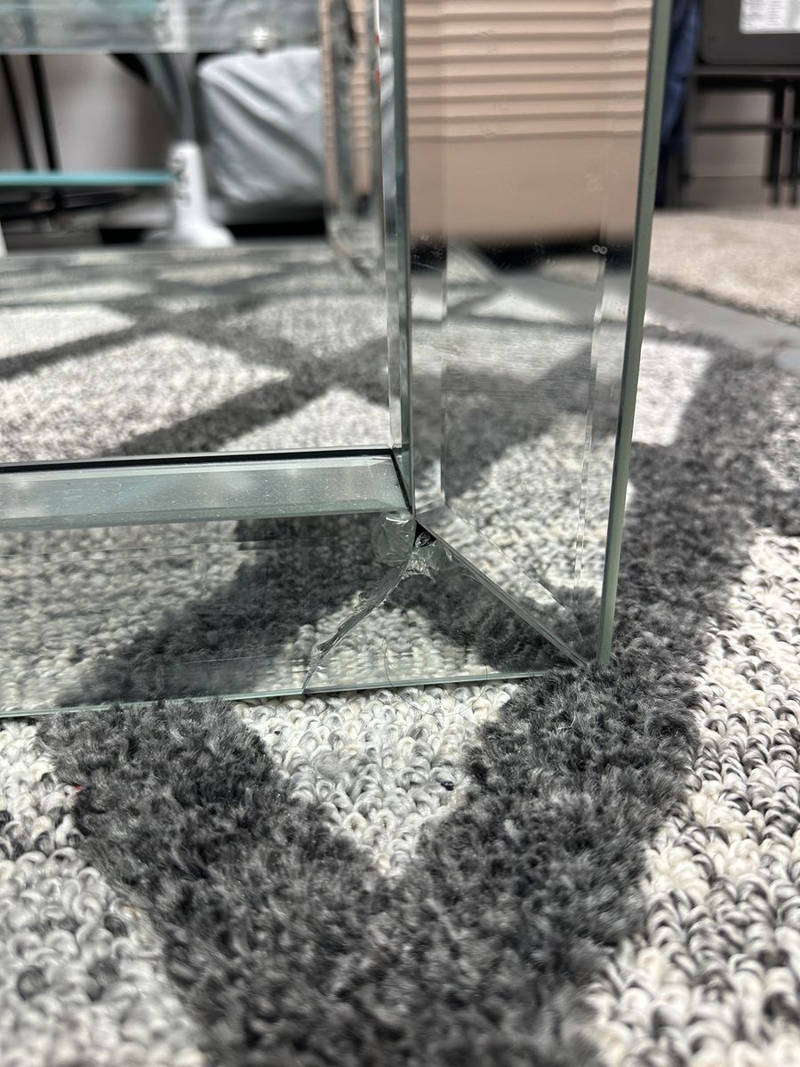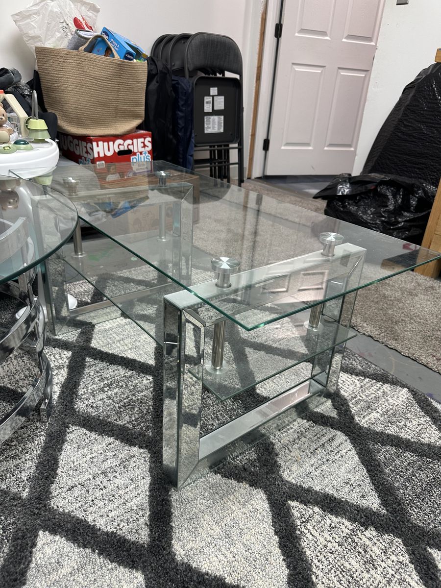ZelleGlass coffee table. has a bit of a scratch on the side, but is still able to function perfectly.