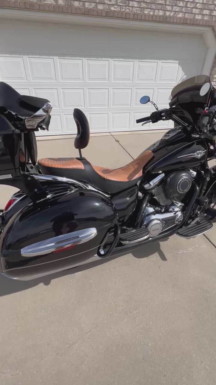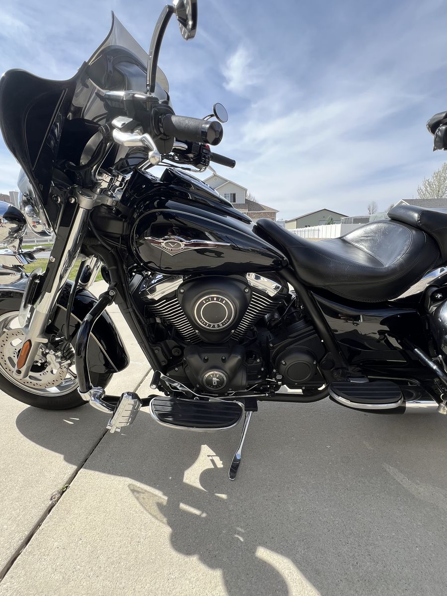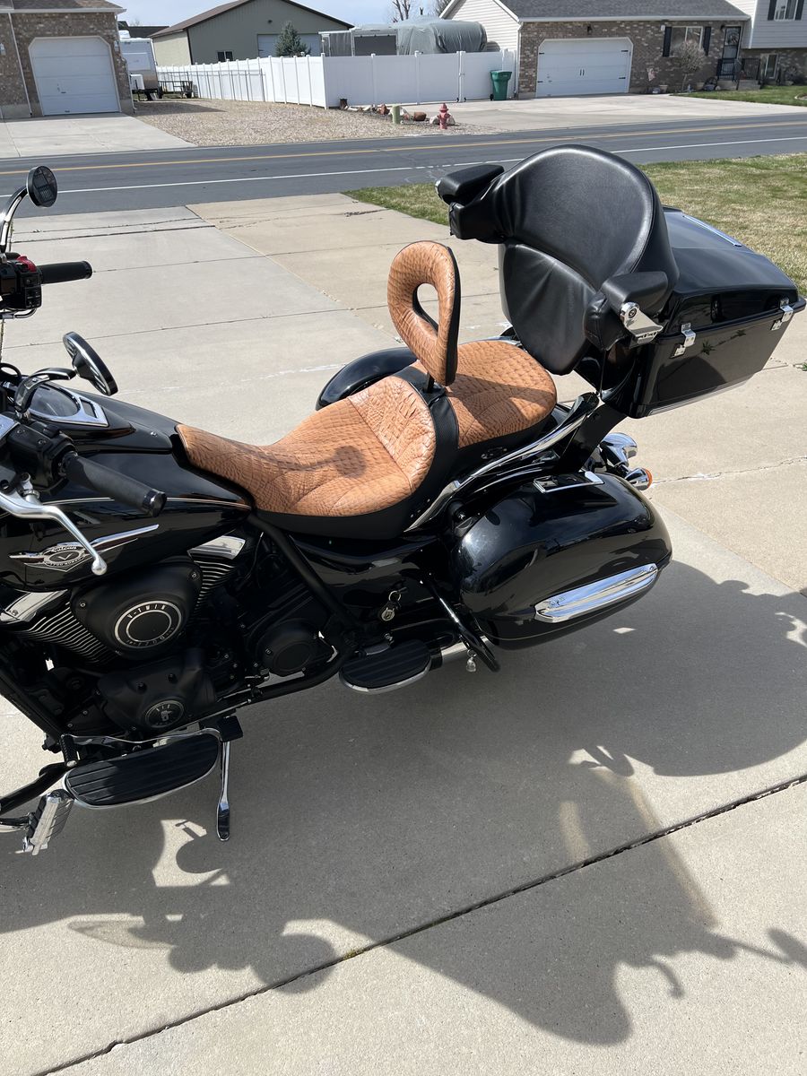 Road ready and smooth riding six speed Vulcan nomad. Great shape and 18,850 original miles for the year. Has hard side bags and trunk for extra luggage storage. 3 stage heated grips. Mustang leather seat with an extra Corbin heated seat and original factory seat. Crash bars with pegs, batwing windshield and extra factory windshield and accessories included. Bike has been meticulously taken care of and always garaged. Text with any questions. Thanks for looking.