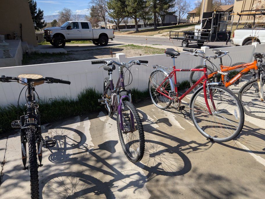 all need some TLC, new tubes or tires, replace or WD40 the chains. cleaning or tuning the gear housing, and replacing or fixing the saddle and hand grips. but they each have great bones and would be great to fix up and flip or keep.