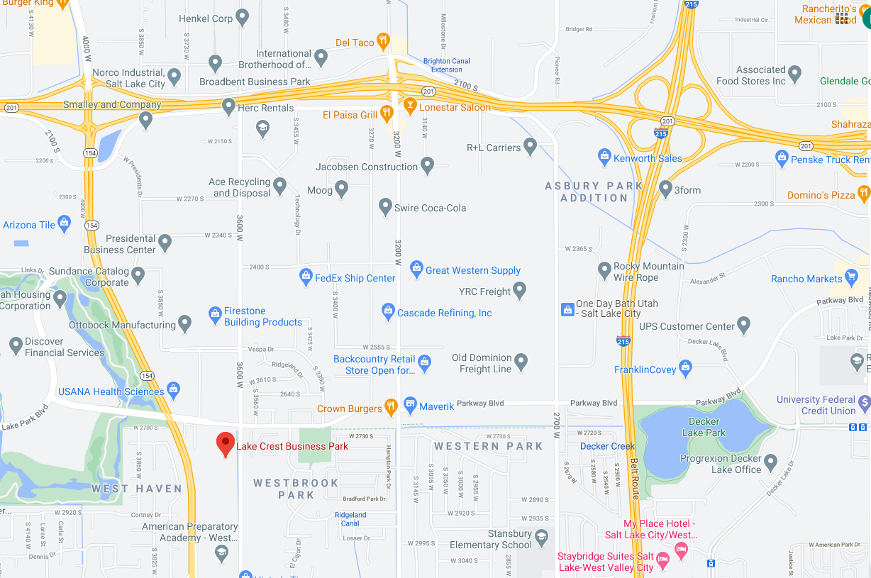 Lakecrest is a business park in a great location in West Valley City. The park is right off Bangerter Highway and the 201 highway. The park has attractive landscaping, ample parking, and a great aesthetic.