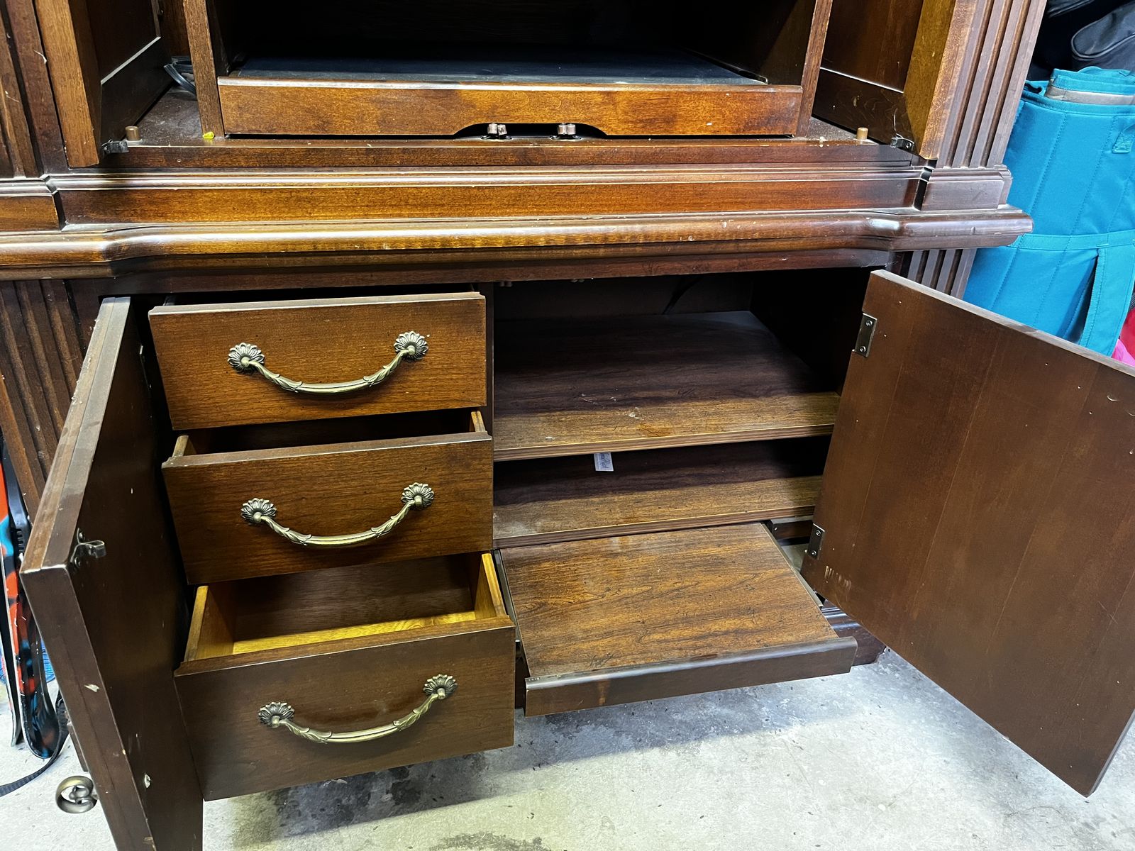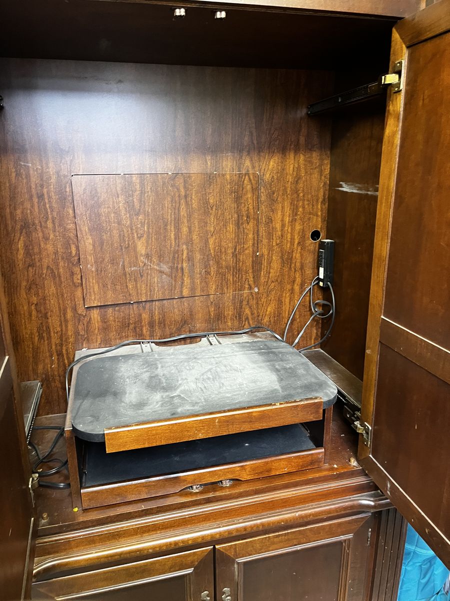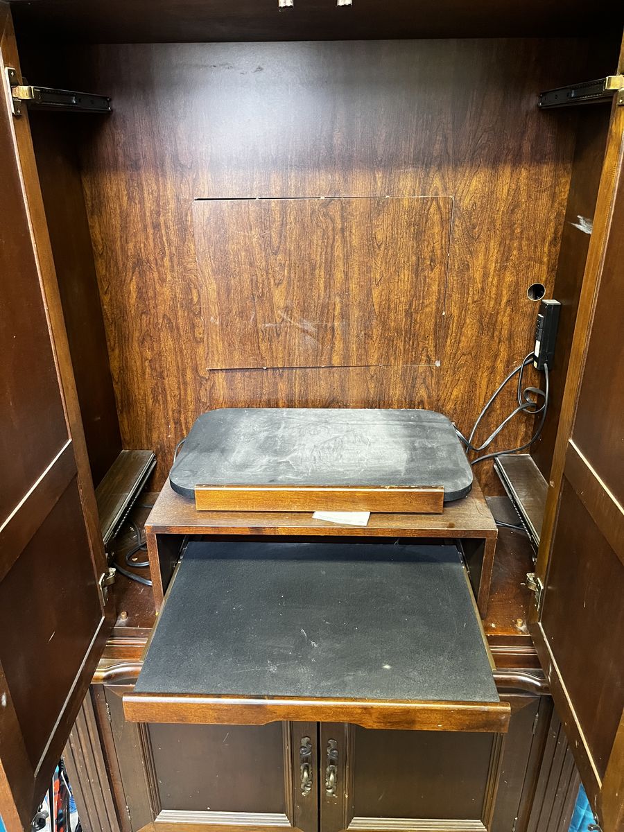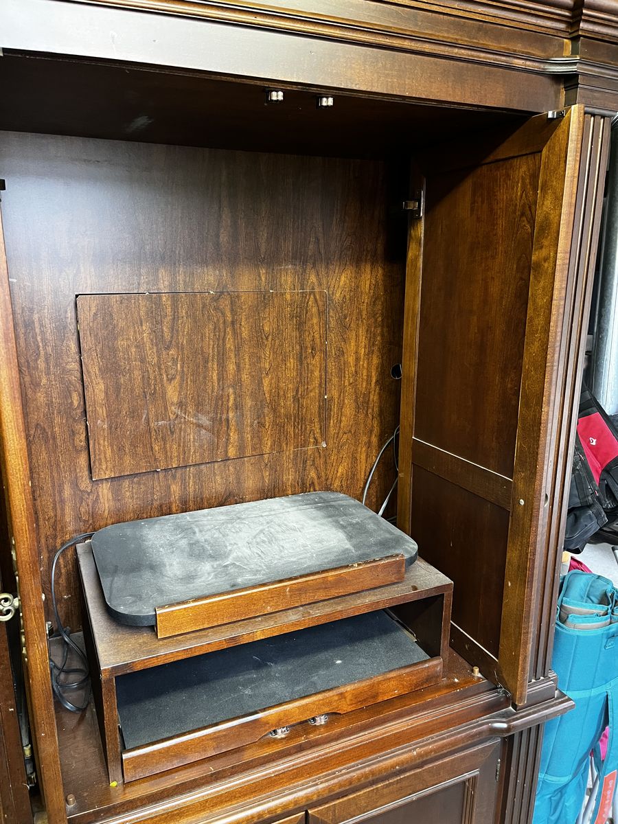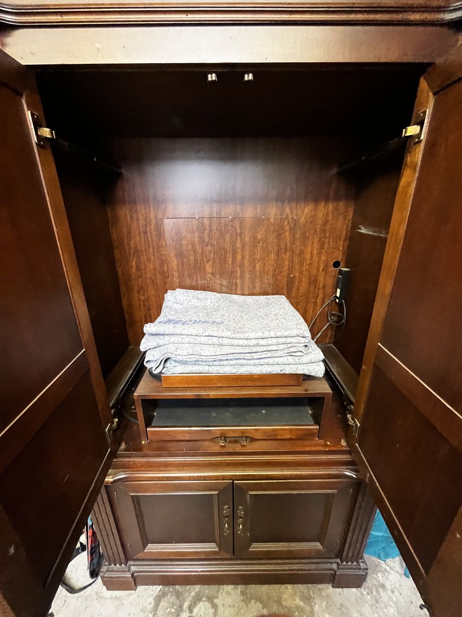 VenmoSelling our old entertainment center. It is super nice but could use a little love. Works great but has been stored for some time now. Solid wood, will need multiple people to pick up, it is heavy!