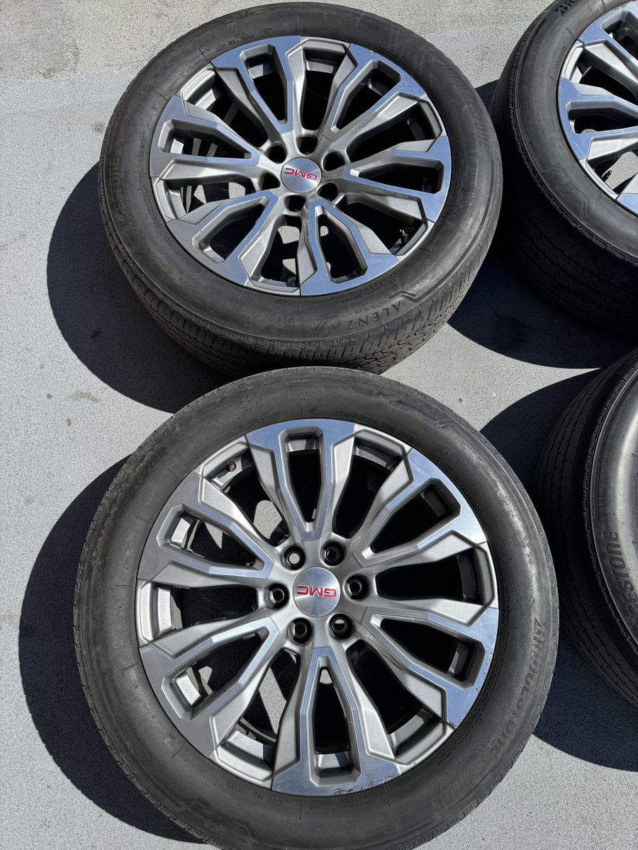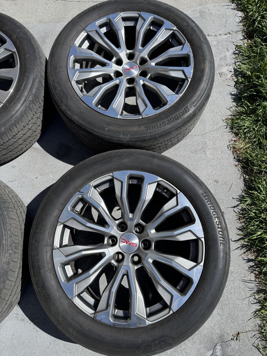 ApplePayTires are good for summer would replace after that. A few scratches on wheels but nothing that affects them. Came off a Yukon Denali Fits: Sierra, Silverado, Yukon, Suburban, Tahoe, Escalade, Avalanche, Toyota, Nissan