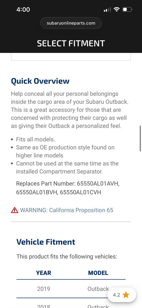 VenmoSubaru Outback retractable cargo cover fits 2015-2019. OEM, used but still in great condition. Mostly been in my garage.