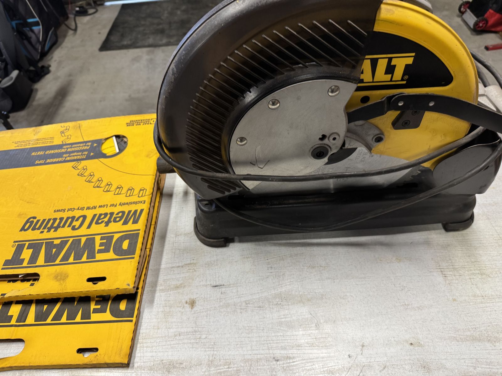 Venmodewalt carbide blade metal cutoff saw with 2 additional new blades. Excellent shape and ready to use. much nicer than abrasive saws. new price is over $700 for the saw and $200 each for the blades. all 3 for $450.
