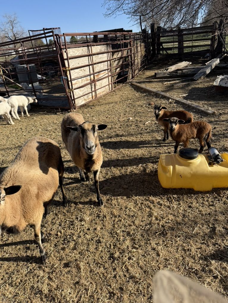 Barbados ewe about 7 years old and twin male lambs borne 3/12/26 Healthy and Very good breeding stock.
