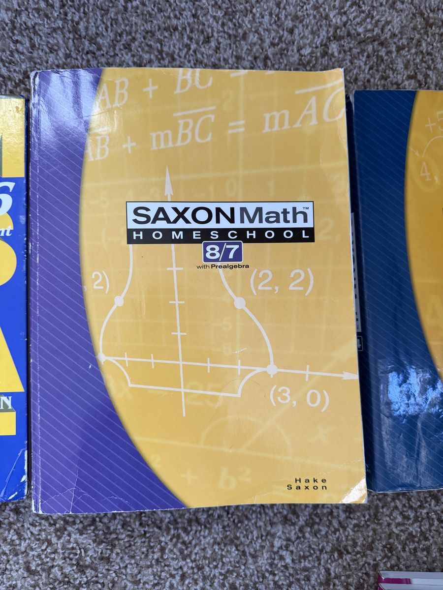 Venmo$40 for all three. Not wanting to separate. Saxon Math 4/5 Homeschool, 5/6 regular and 7/8 Homeschool books. Used but limited writing.