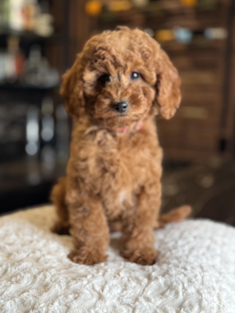 ApplePayWhere you purchase your puppy matters! In 12 years we have e never had a sick dog or one returned. Both parents have beautiful temperaments and health tested! Her coat is thick and wavy! They were raised around kids, big dogs and cats and are very socialized and confident. They are doggy door trained to use the bathroom outside. They were dewormed at 2,4,6, and 8 weeks and first and second set of shots given. We have1 girl left.
