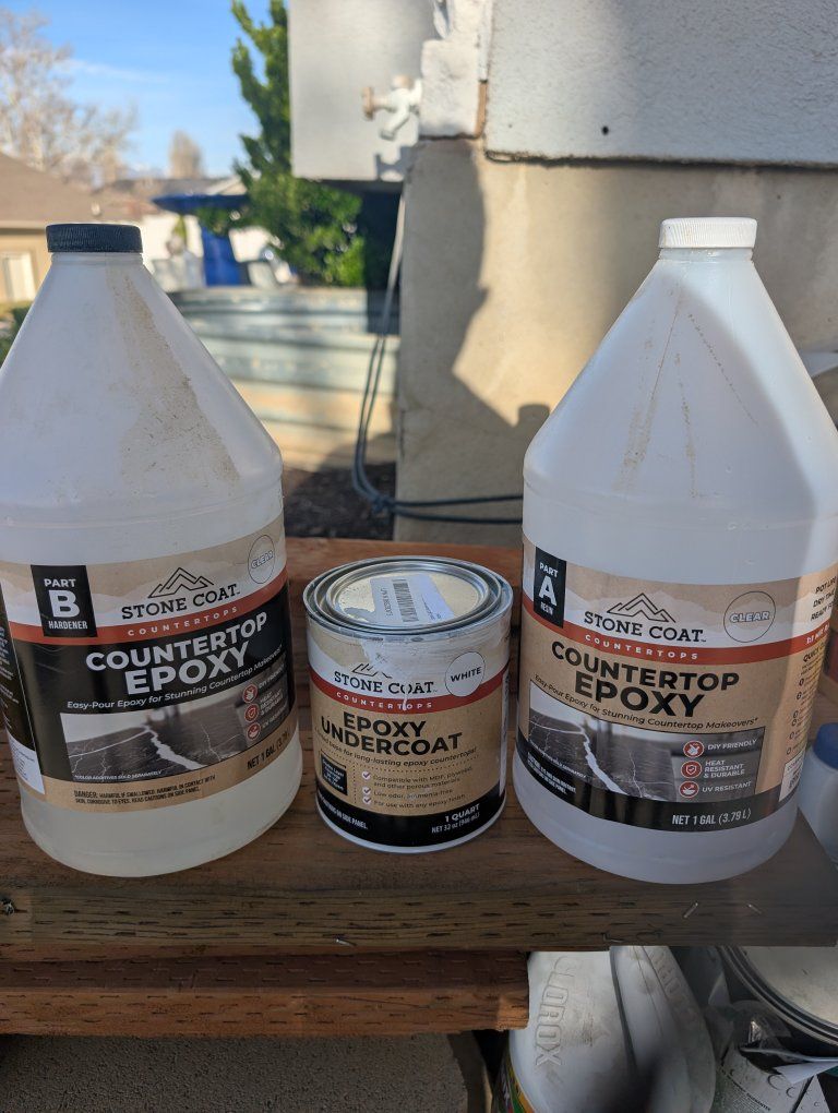 countertops w foodsafe non fading epoxy, 4 new gallons 40 ea, 2 open gallons 30 for both pre color white 6 bucks