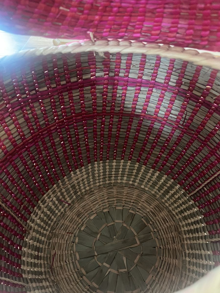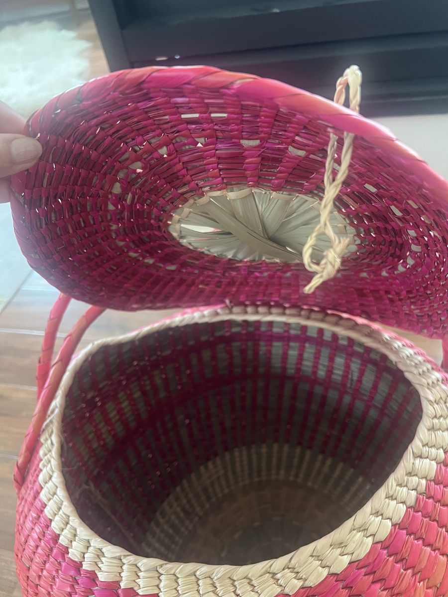 VenmoWoven Rattan/Straw Colorful Basket Lid Handles 14” height 15” diameter, smoke and pet free home. Cash or Venmo.