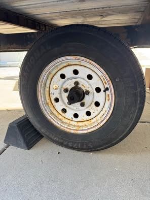 In good shape, we’ve used it for snowmobiles and it has two screw down rods and a pull out ramp out the back.