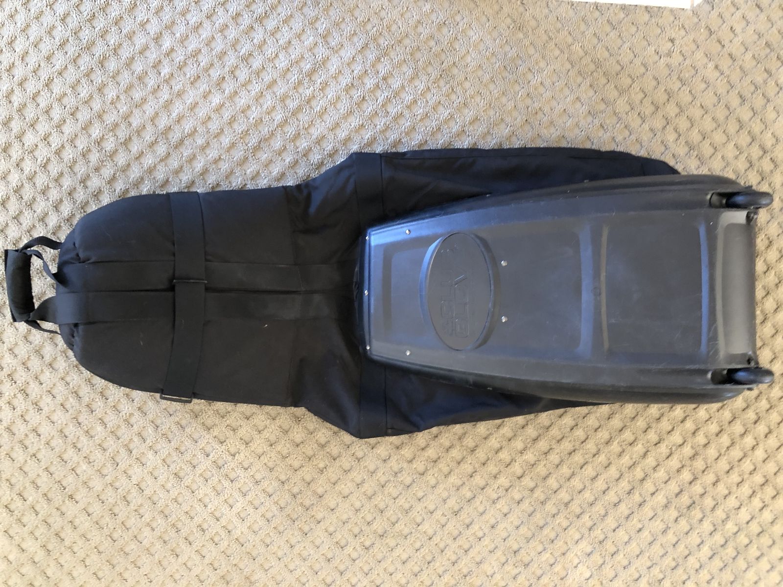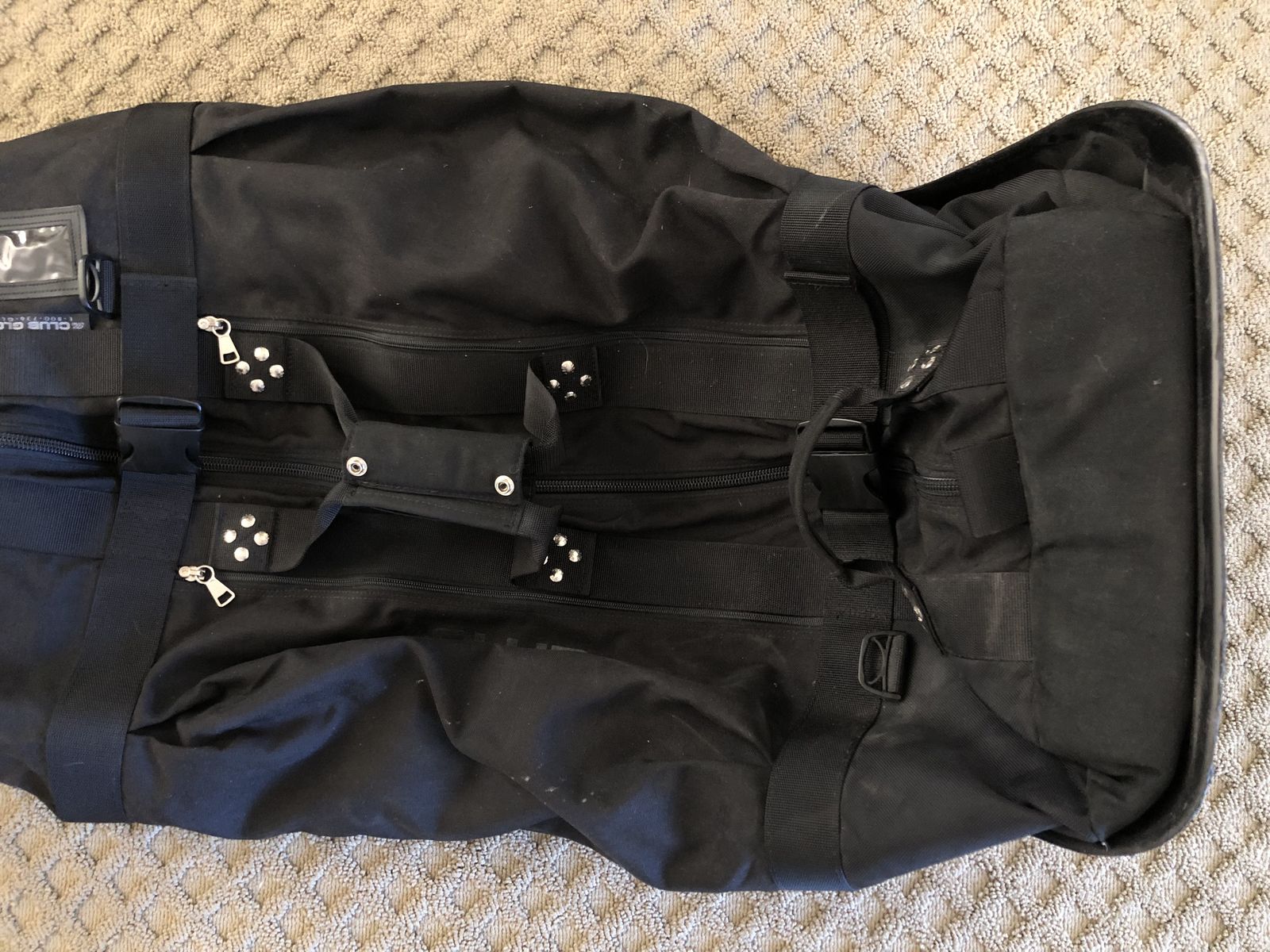 Black Color. College Traveler Model. Clean and In Excellent Condition. No rips holes or tears. Two zippered compartments on the outside. Very Spacious Approximately 48” x 13" x 13".
