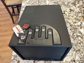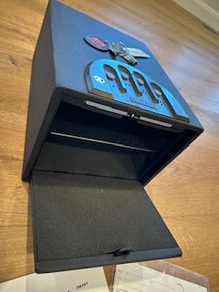 Bedside Gun Safe. Opens with finger combination or with key. Operators manual and mounting screws included.