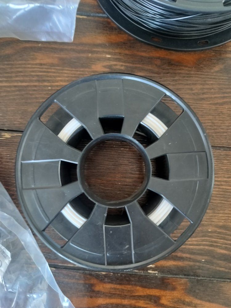 1 white roll of PLA with 1/4 left 1 black roll with barely any used.