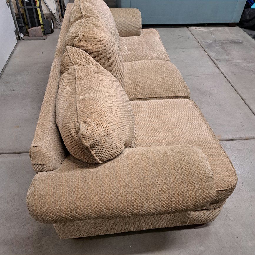 Sturdy wooden end tables can optionally be added on for an extra $85. No wobble. Slate tile tops.