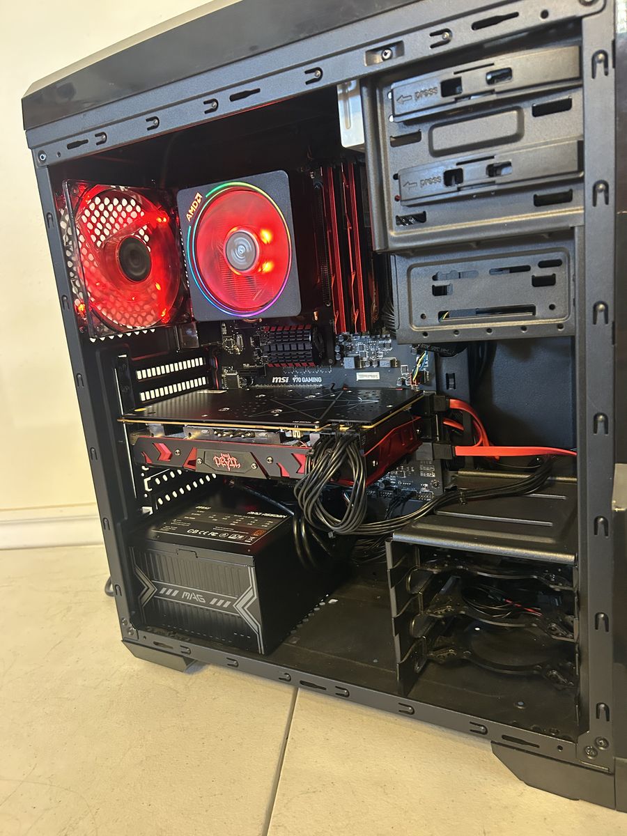 VenmoVersatile Performance for Work & Play: Looking for a budget gaming PC that doesn’t look like one? This build features a cohesive red-and-black aesthetic that looks the part without the premium price tag. It holds its own in titles like Apex Legends, Hogwarts Legacy, and GTA V. Fully refurbished, stress-tested, and ready to game on day one. ⸻ 🥊 Exceptional Performance: This PC packs a punch with benchmark results that prove what kind of a champ it is. Get ready to conquer virtual worlds! ⸻ ️ Heaven Benchmark 4.0 (Average FPS) Graphics test to show 3D gaming strength — perfect for older titles and indie games: • Resolution: 1920x1080 Low: 161.6 | Med: 126.9 | High: 110.5 | Ultra: 100.2 ⸻ Fully Refurbished & Stress-Tested: •Fresh thermal paste applied to both CPU & GPU •New Lithium CMOS Battery •Motherboard BIOS updated •PSU verified with hardware tester •SSD upgrade to speed up the operating system •Drive health verified •Clean install of Windows 11 preloaded with all necessary drivers and an Active License •Stress-tested using Heaven Benchmark to verify stability under load ⸻ Specifications: •OS: Windows 11 Pro 25H2 •Drives: -Boot: 120GB SSD PNY CS1311 -Storage: None (extra Sata Cable included for easy expansion) -Disc: DVD R/W •GPU: 8GB GDDR5 AMD RX 580 Red Devil -Ports: 1x HDMI 3x Display Port 1x DVI-D •CPU: AMD FX-8350 -Frequency: 4.3GHz (Overclocked) -Cores: 8 -Threads: 8 •CPU Fan: AMD Wraith Prism •RAM: 16GB (8GBx2) DDR3 G.Skill TridentX -Frequency: 2400MHz (set to 2239M/Ts platform max) -Voltage: 1.65V •Mobo: MSI 970 Gaming •PSU: 550W 80+ Bronze MSI MAG A550BN •Wifi: AX1800 WiFi 6 TP-Link TX20U Plus •Case: Rosewill NAUTILUS •Fans: 2x 120mm Intake 1x 90mm High Airflow Intake 1x 120mm Red LED Exhaust ⸻ What’s Included: •Gaming PC •Power Cord •Ttesports Commander Gaming Keyboard •Etekcity Gaming Mouse •Free Post Sale Tech Support -Help with Setup and Troubleshooting ⸻ Your Journey Continues: Keep exploring my other listings to find an exciting array of hidden treasures!