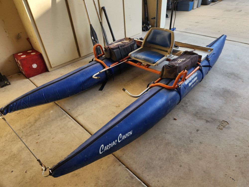 VenmoThe Cardiac Canyon River Pram by Dave Scadden is a highly portable, frameless pontoon boat (or "river pram") designed for fishing in challenging whitewater. It is lightweight—weighing around 50–65 lbs—and features a fully rockered hull that can handle up to 6HP or more.