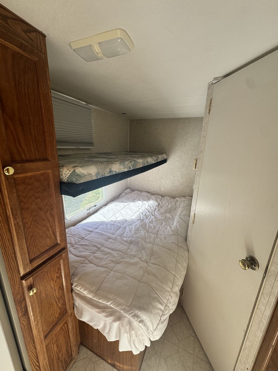 Heater, AC, stove, fridge and plumbing all work. Only thing we couldn’t get running was the water heater. Sleeps 6. About 21’ from tongue to bumper. Tires have a lot of life left in them.