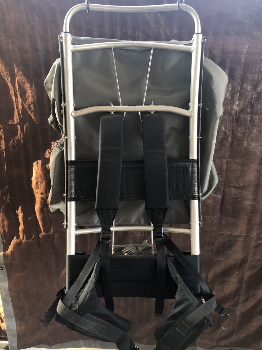 Excellent Condition Late 70’s Tioga. Light use very clean no rust rips holes or tears. External frame, hip belt with original quick release cam buckle, shoulder straps, back netting, pins and zippers are all original and fully functional. Grey/Blue Color. Size is Large. Probably best for someone 5’9” or taller.