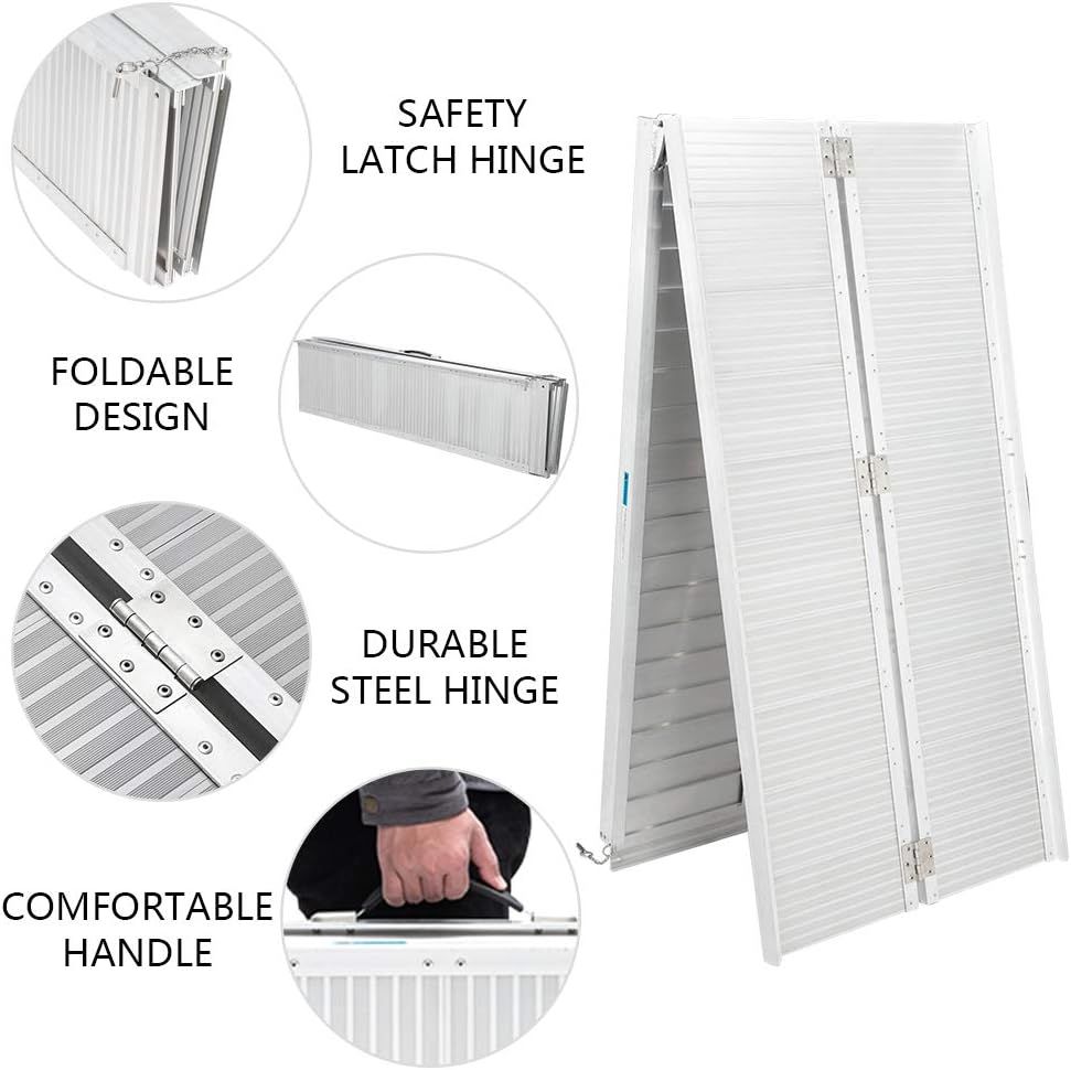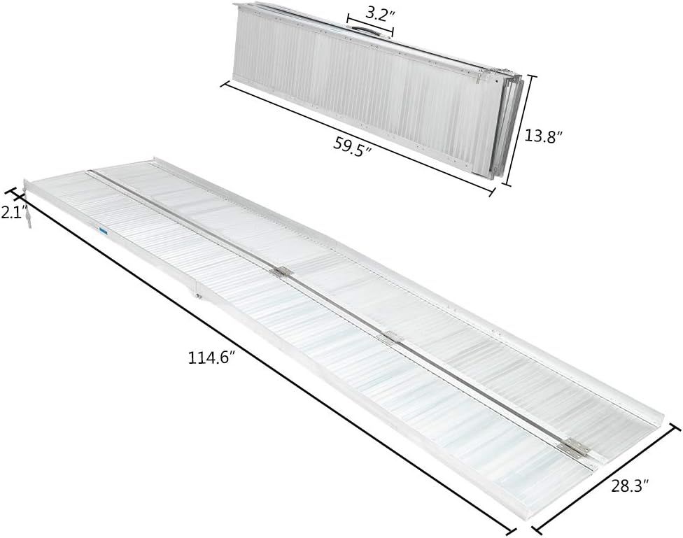 Venmo10' Wheelchair Ramp Threshold Portable Ramps w/Support Legs, 10ft for Home Steps Doorway Stairs Aluminum Handicap Metal House Mobile Porch Temporary Multifold Disable No-Slip Scooter Ramp