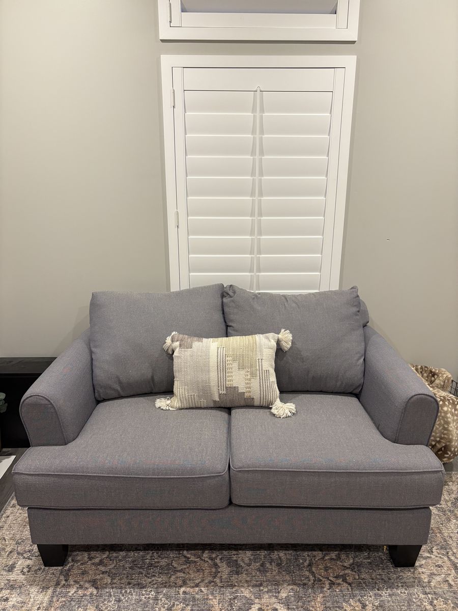 RC WILLEY BLUEISH/GREY COUCH AND LOVE SEAT