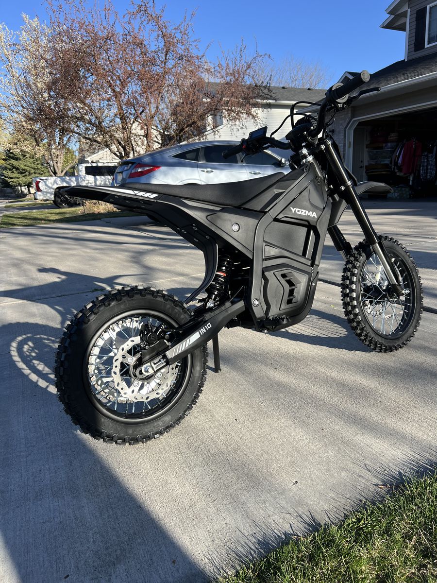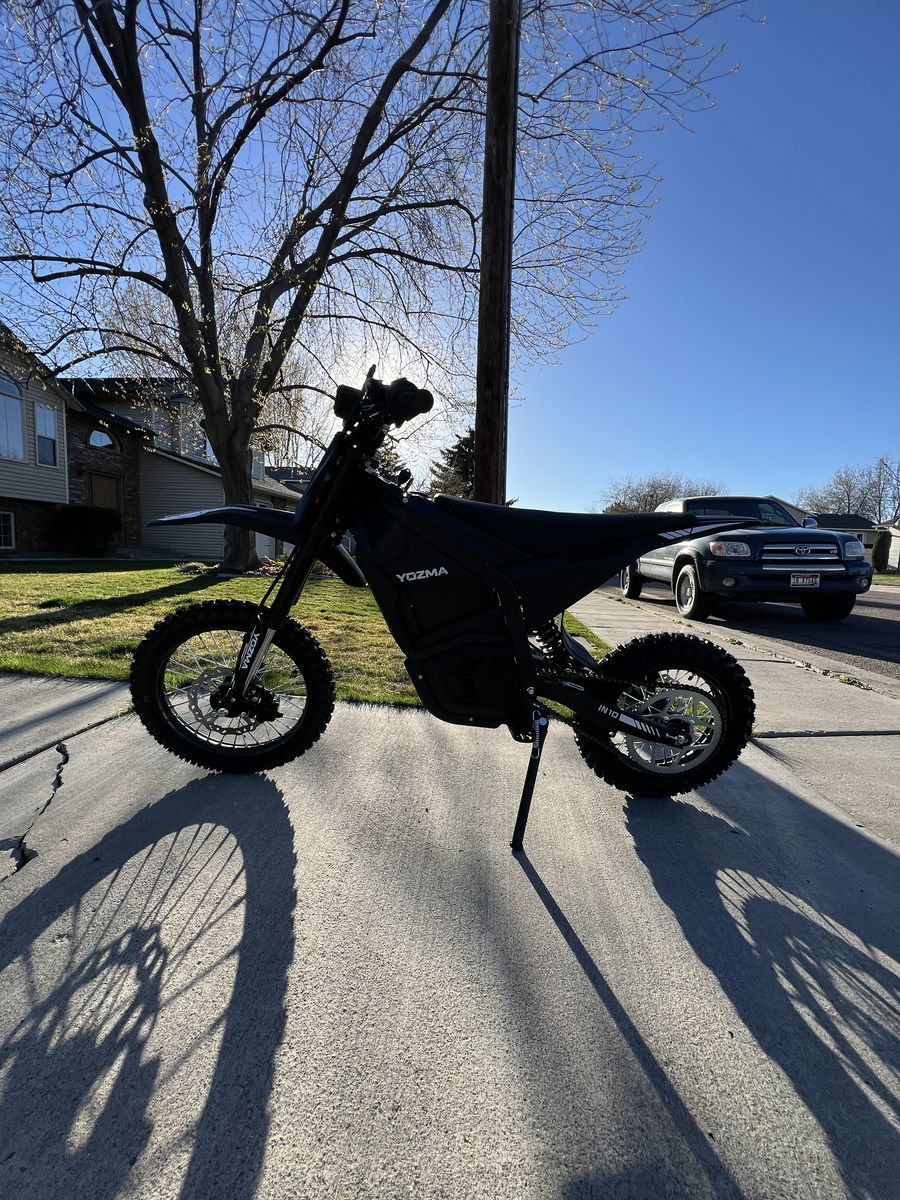 ApplePayNO TRADES PLEASE. MIDNIGHT BLACK YOZMA IN10 BASE EMOTO. This bike is an absolute blast to ride and mob down the trails. BLACK IS A LIMITED EDITION COLOR, looks super sharp. Yozma IN 10 Off-Road Electric Mini Dirt Bike For Teens & Adults Motor: 2600W Top Speed: 40MPH Battery: 48V Max Range: 53Miles Suitable Eider Height: 3.94ft - 5.9ft
