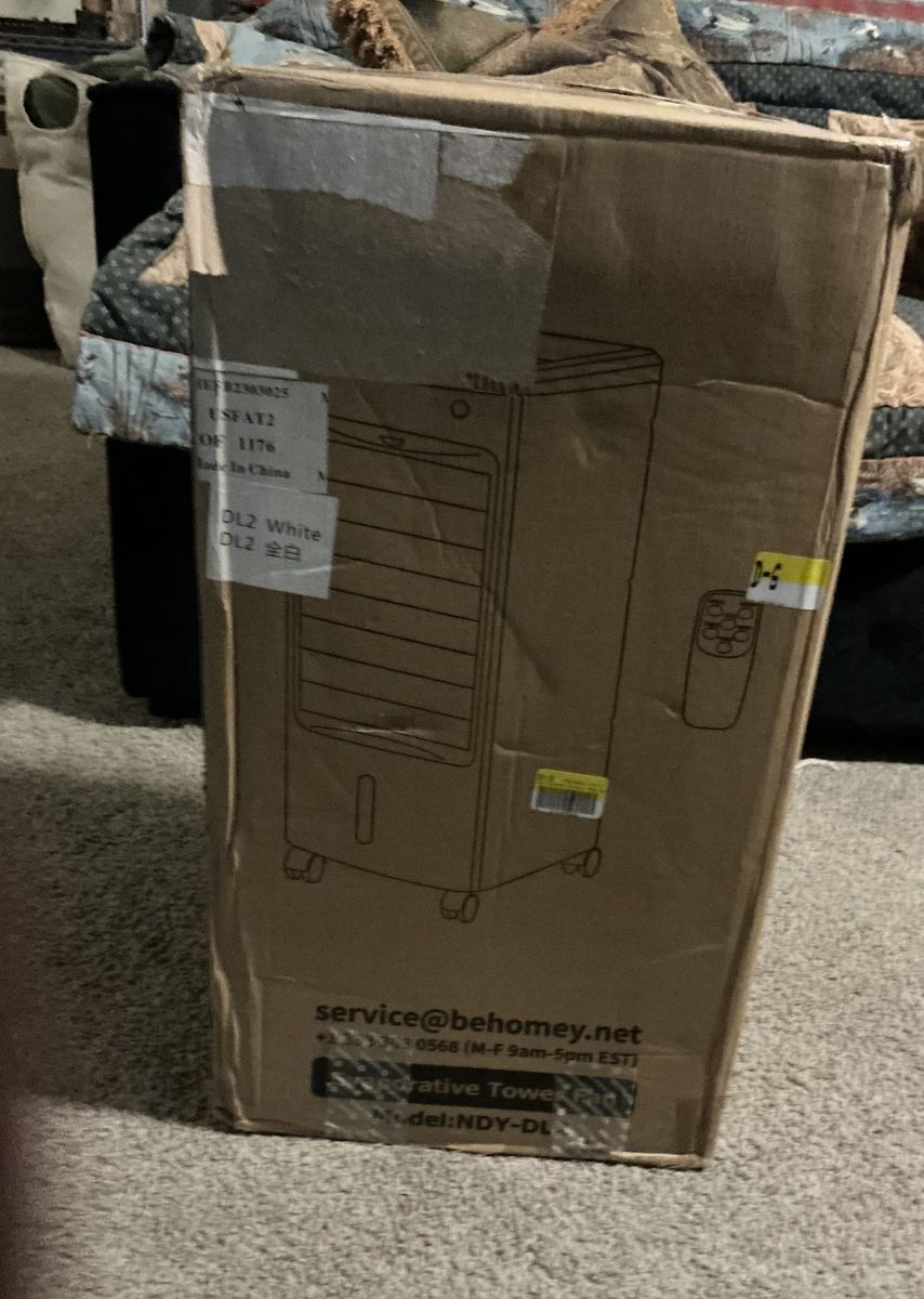 ApplePayBehomey Evaporative Tower Cooler - New in Box - Model NDY-DL2 New in box Behomey evaporative tower cooler / portable air cooler. Compact rolling tower style with remote control. Great for bedroom, office, apartment, or small room cooling.
