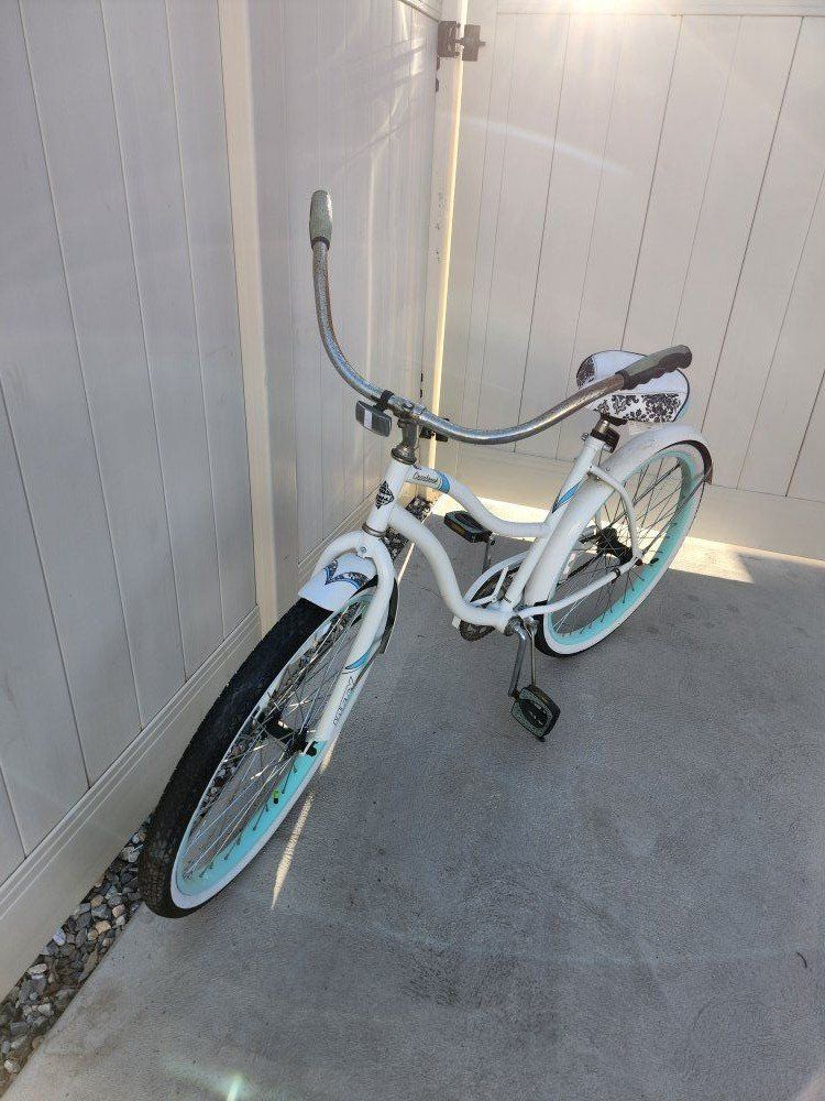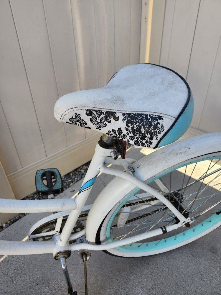 VenmoThis is a nice bike. Take a nice comfortable leisurely ride. Tires are good, seat is good. Size: 26" Color: White, Black and Turquoise see pics If you are interested text/call 801-430-0262 If no answer please leave a message. Thanks.