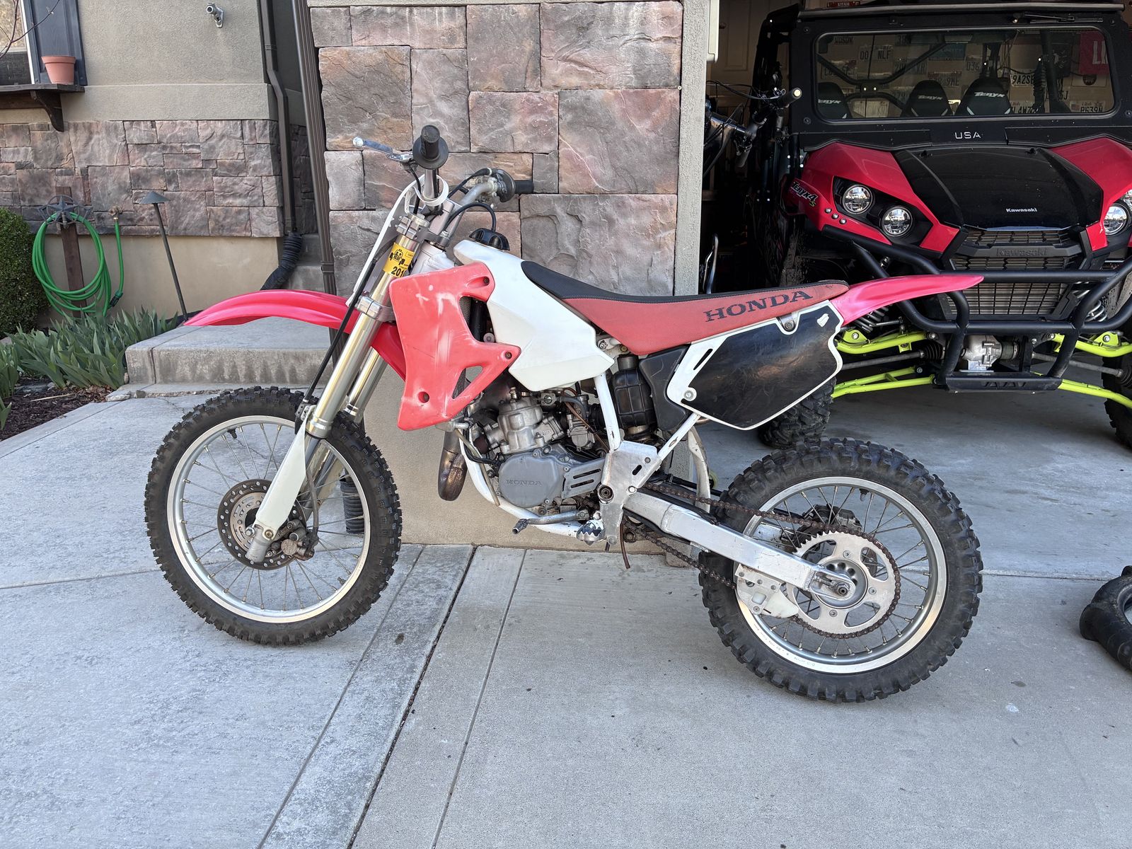 This thing rips!! It’s got a big bore kit with a Bill’s pipe and can keep up with bigger bikes. It has a brand new front tire on it and comes with a paddle tire. It’s in pretty good condition for its age. Lmk if you have any questions I am open to trades.