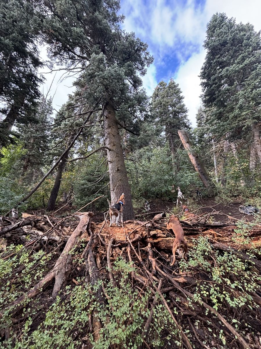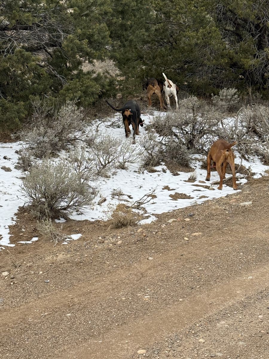 TJ is a four year old cut male red dog! He is a pack dog for the most part! He will trail and go with the pack but isnt a dog that will start a track! I always put him in with dogs that would start it! He will stick with a walking bear and a mean bear! (He doesn’t fight) he has been on lions and bobcats as well! Tone broke and good is the box and at home!