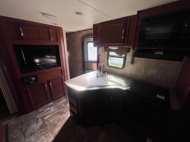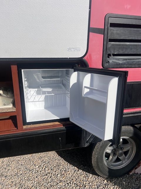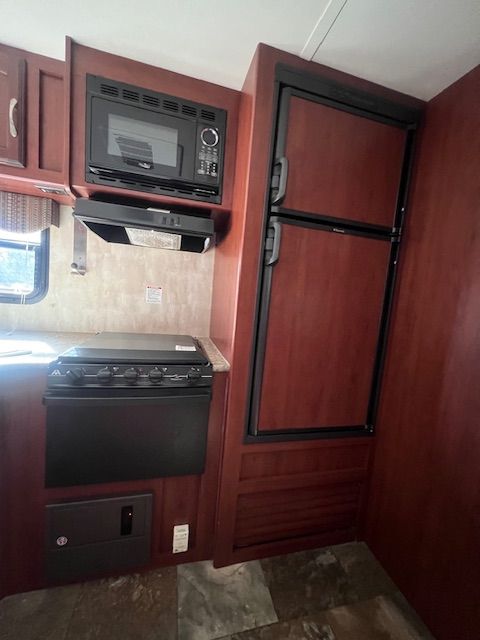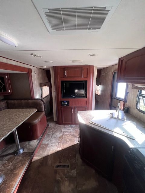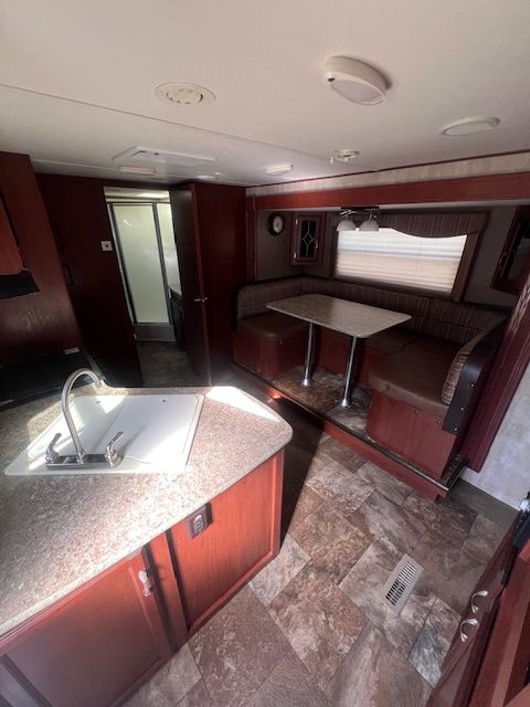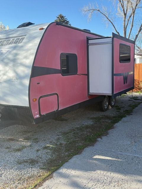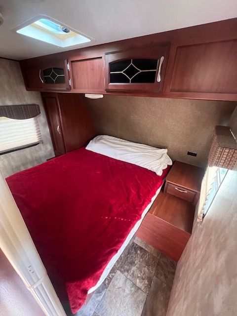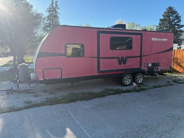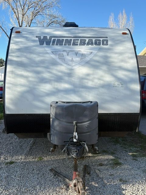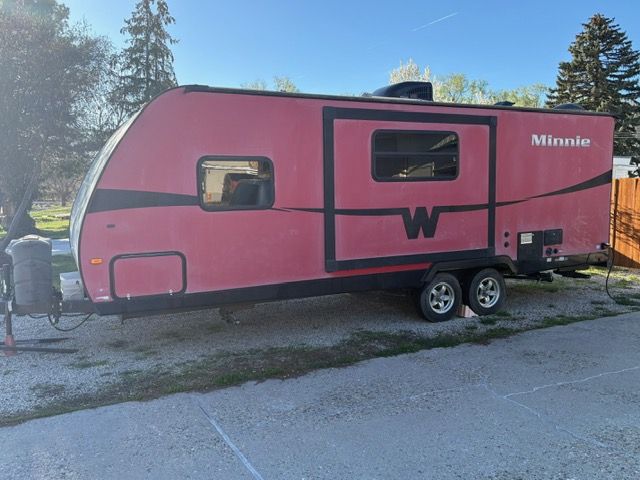 ZelleThe 2015 Winnebago Minnie 2201DS is a lightweight, 26' 9" travel trailer with one slide-out, designed to sleep 4 people, weighing approximately 4,820–5,535 lbs dry. Key features include a U-shaped dinette, queen bed, 43-gallon fresh water tank, and a 25-gallon black/gray tank capacity, typically featuring a 13,500 BTU AC unit.