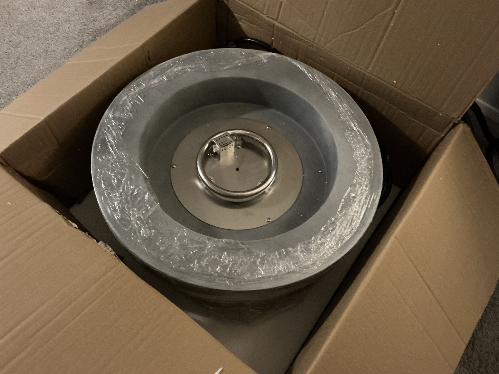 Brand new / open-box Kante 25-inch propane fire pit bowl with modern concrete-look finish. Great size for patio, porch, deck, or backyard seating area.
