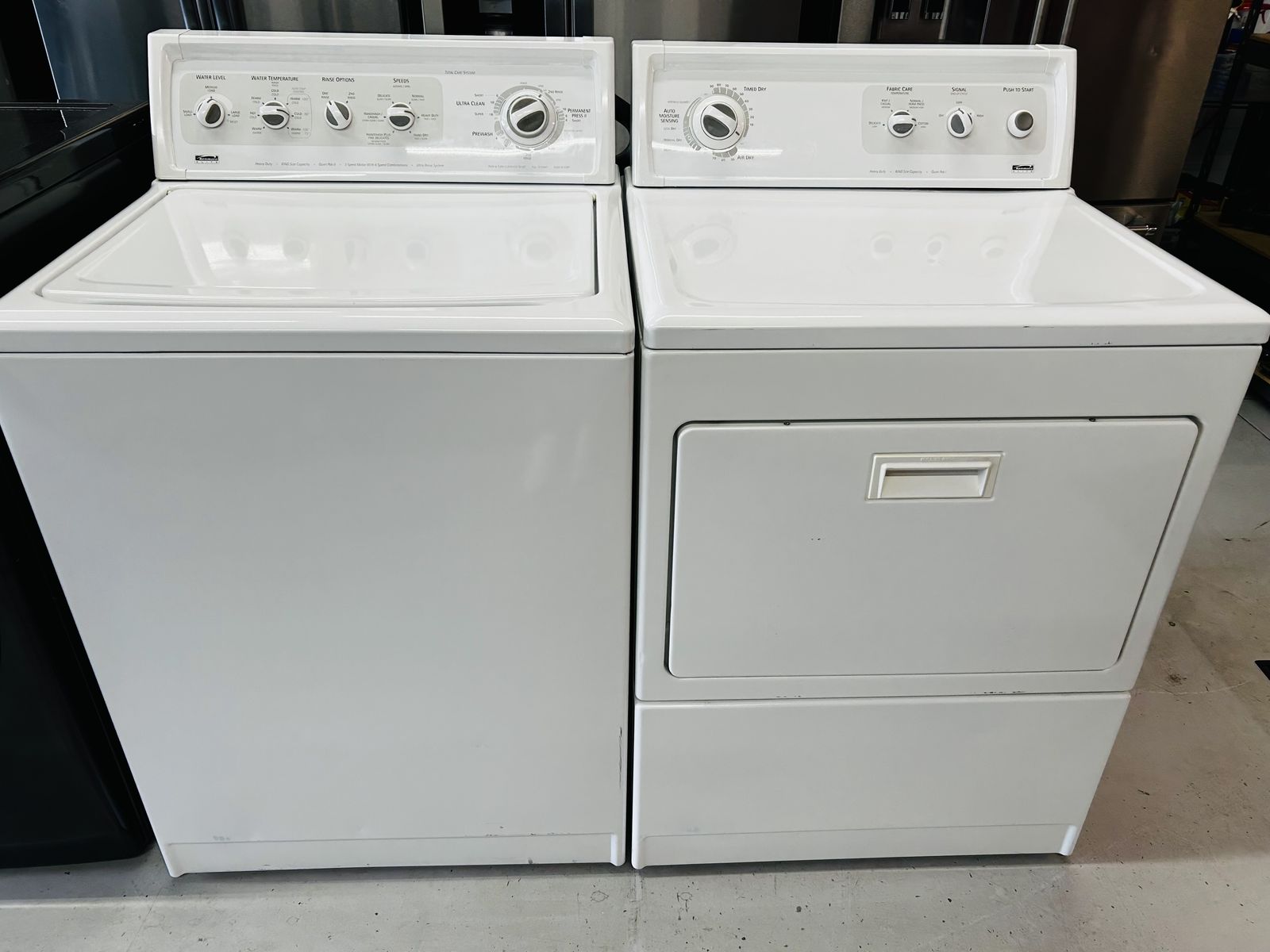 Kenmore Elite washer king size capacity quiet Pak ll ultra rinse system heavy duty ultra clean extra rinse normal delicate hand wash prewash soak permanent press etc..Kenmore Elite electric dryer king size capacity quiet pak l heavy duty time dry wrinkle guard auto moisture sensing air dry normal casual delicate perm press cotton etc..They work great, clean, 45 day warranty, delivery/install available.