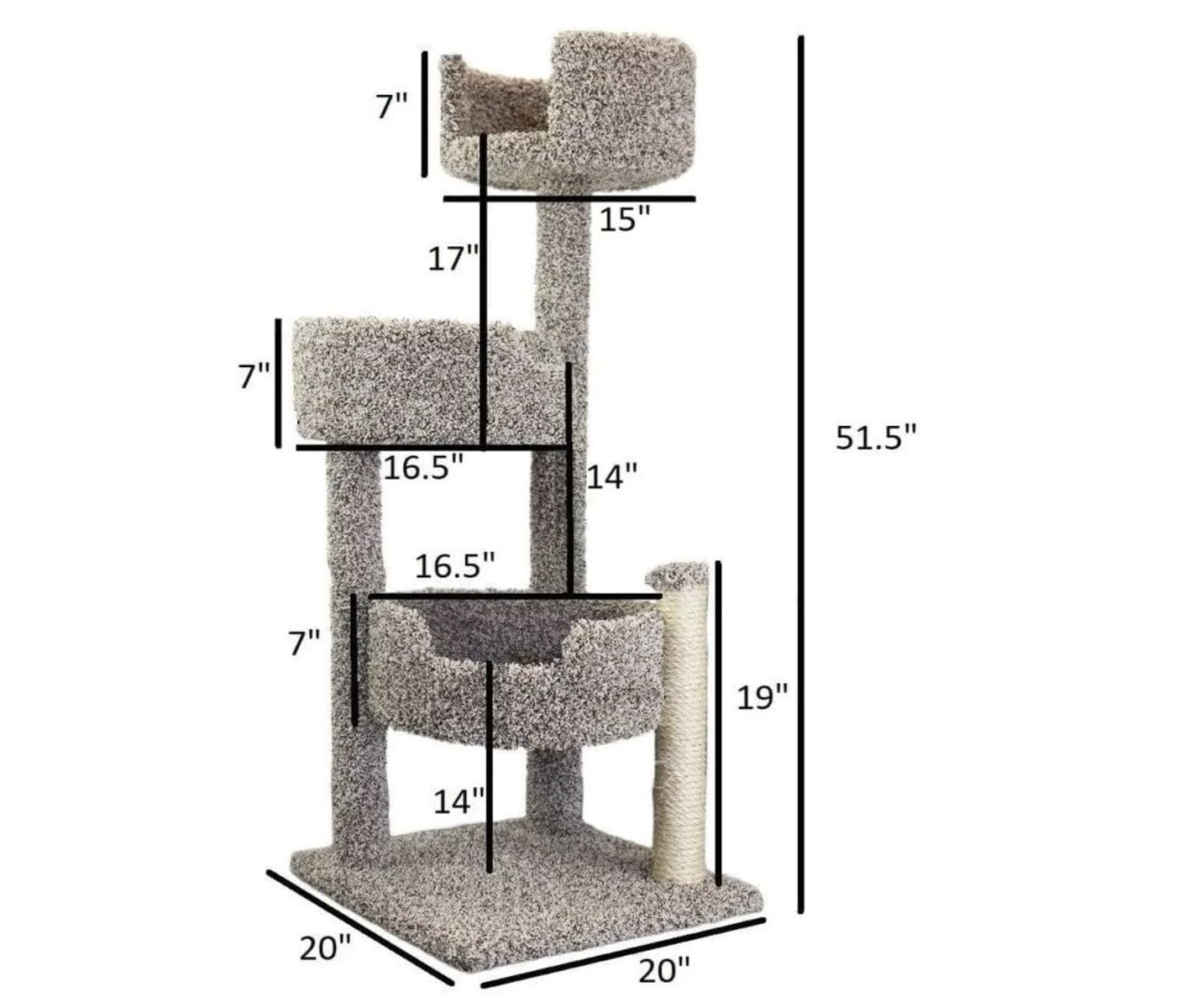 Brand new in box, Multi-Level Cat Cat Climbing Tower Cat Tree, Solid Wood and Carpet Construction, Modern Cat Tree with Scratch Post and Sturdy Base Speckled/26 L x 25" W x 49" H Integrated Scratch Post for Claw Maintenance Equipped with an integrated scratching post wrapped in durable sisal rope, the Maykoosh Baroque Brilliance Tower promotes healthy scratching habits. Cats can sharpen their claws and stretch their muscles on the scratching post, reducing the risk of destructive scratching elsewhere in your home. This feature supports cats' natural behaviors and helps maintain a harmonious environment. Excellent Solid Wood and Carpet Construction Crafted with solid wood and plush carpeting, this cat climbing tower combines durability with comfort. The solid wood frame ensures stability and longevity, while the plush carpet surfaces provide soft and cozy areas for cats to rest and play. The carpet material is gentle on paws and encourages healthy scratching behavior, helping to maintain cats' nail health and protect your furniture. Multi-Level Design for Active Cats The Maykoosh Baroque Brilliance Cat Climbing Tower features multiple levels, providing ample space for cats to climb, jump, and explore. Each level offers different heights and platforms for cats to enjoy vertical movement, encouraging exercise and satisfying their natural instinct to perch and observe. Sturdy Base for Stability Designed with a wide and sturdy base, this cat climbing tower ensures stability during active play. The robust construction prevents wobbling or tipping, providing a secure environment for cats to engage in energetic activities without concern. Whether placed in a corner or centrally in a room, the tower offers a safe and reliable space for cats to enjoy their daily adventures. Modern Design to Enhance Your Home Combining functionality with modern aesthetics, the Maykoosh Baroque Brilliance Cat Climbing Tower adds style to your living space. Its sleek lines and neutral tones complement contemporary interiors, making it a sophisticated addition to any room. Whether your cat prefers to play, nap, or simply observe from above, this tower provides a functional and elegant retreat that enhances both your home decor and your cat's quality of life.