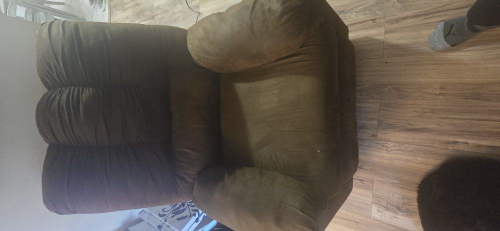 We have a matching sofa and recliner we're selling. asking 250.00 for the set. It is microfiber, thats why the fabric looks discolored. its darker/lighter depending on the direction of the material pill. Smoke free home, it never had anything gross spilled on it. original price was like 800.00 retail when we bought them.