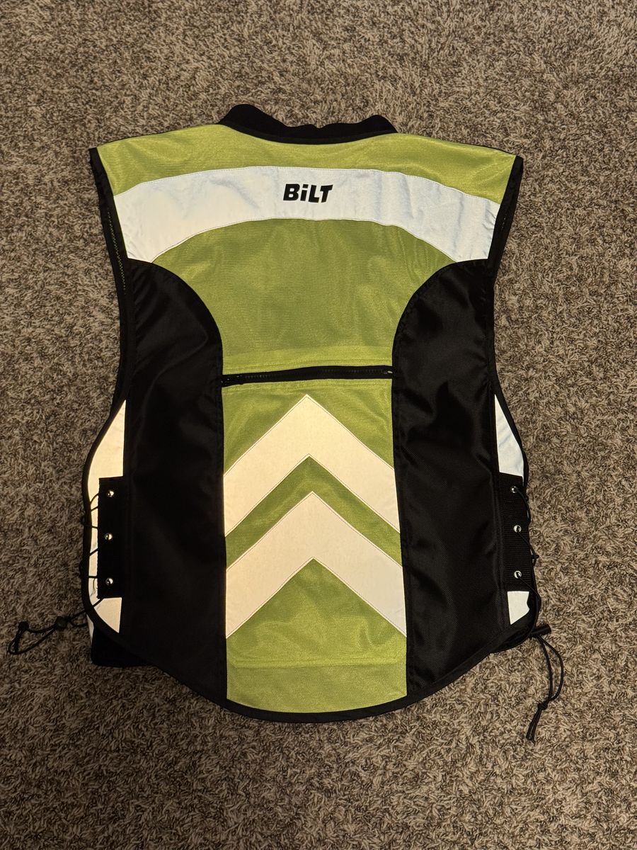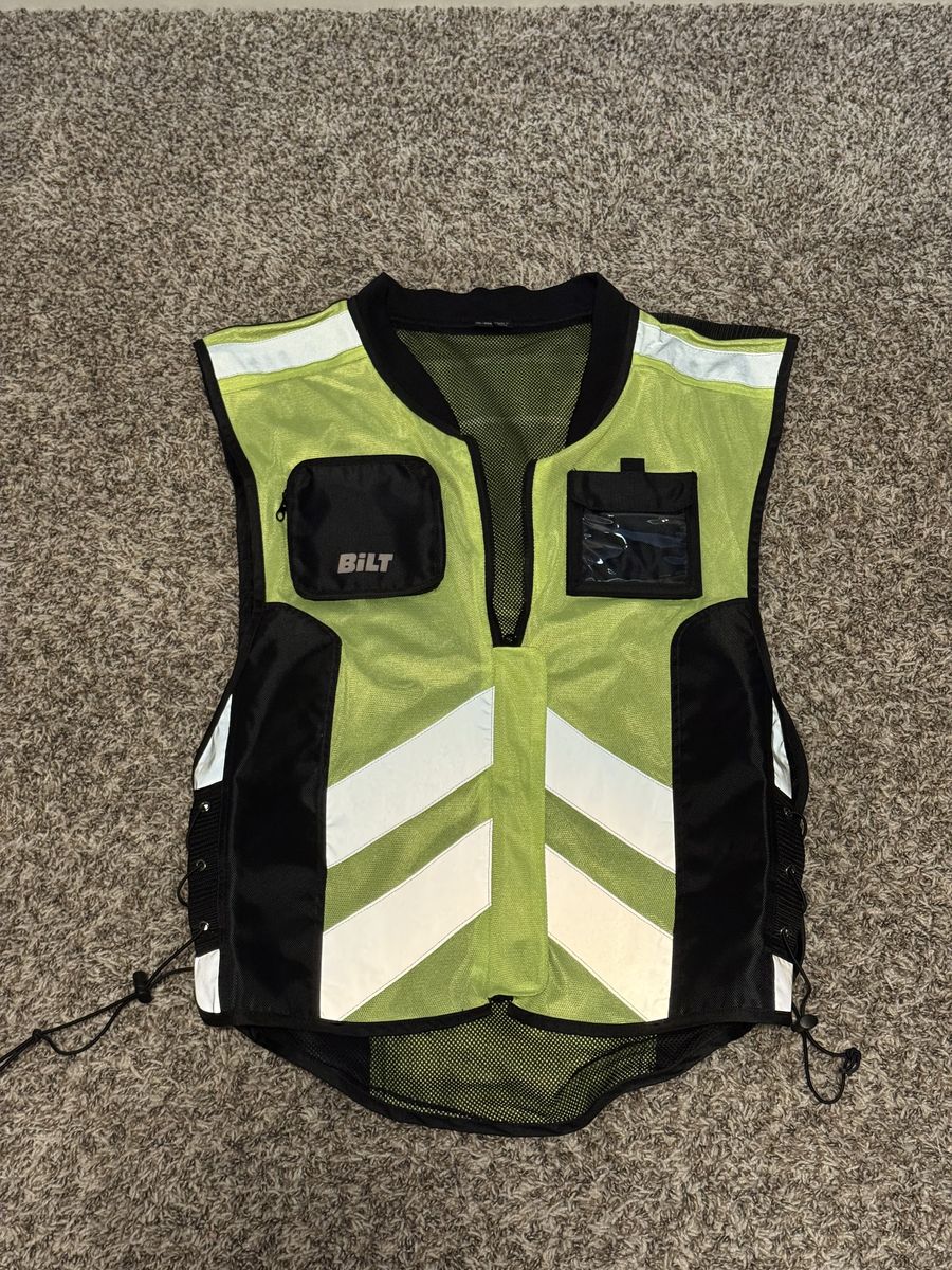 VenmoBilt Solar Reflective Vest Size XL-4XL. Don’t let the size ward you off—I wear a medium riding jacket and this fits over the top nicely.
