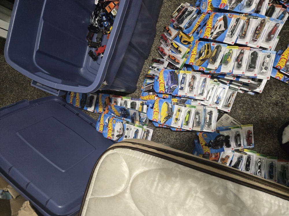 He has: 202 - opened hot wheels 222 - unopened hot wheels with rares 27 Die-cast/pullback cars I really don't want him to sell them but he wants to use the money toward a new Electric bike. He would like to sell the collection in full- (ie not having people come and cherry pick their favorites)