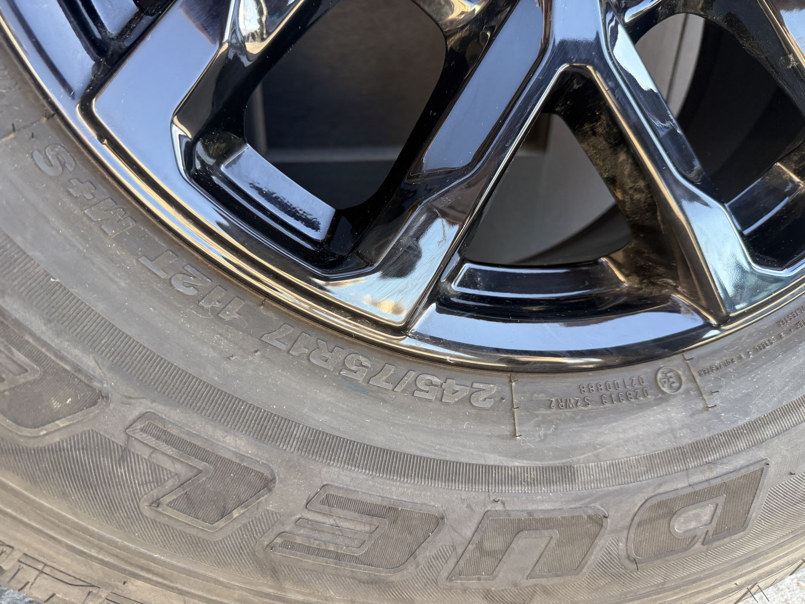 They are shod with Bridgestone Duelher tires in size 245/75r17. The wheels still have their pre delivery stickers on them.