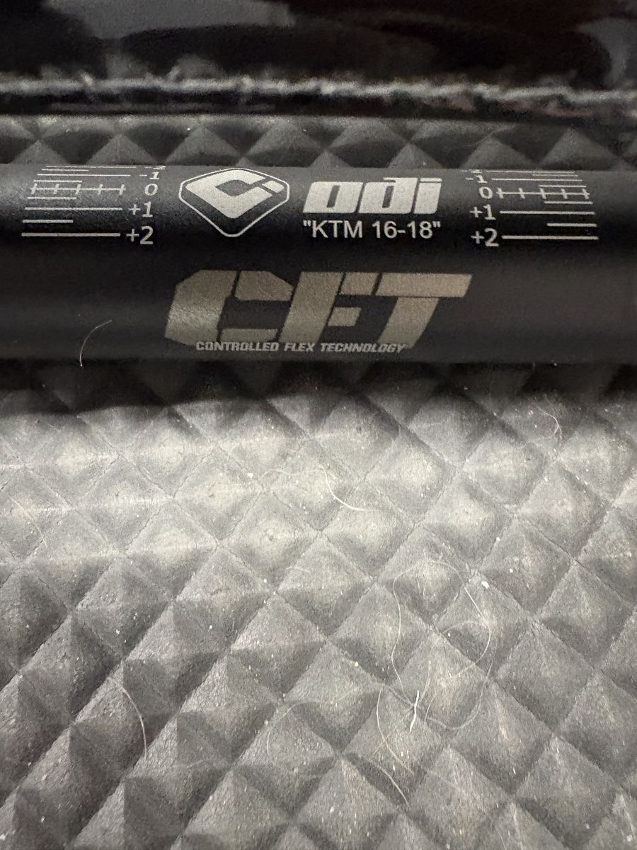 1-1/8 16-18 KTM bend. Used once and decided to go a different route.