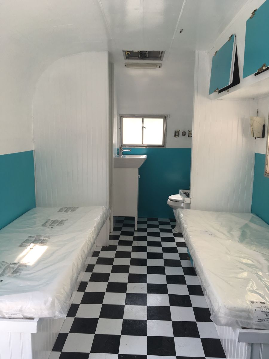 This is a early 90’s 21’ silver streak dual axel trailer. The exterior of the trailer is in very good condition. The inside of the trailer has been gutted and a new floor installed. It is set up now with a front trundle bed that can be used as a twin bed or couch, and a trundle bed pulls up making a king bed. Over the wheel wells are two small bunks for children. There is a toilet, sink and shower in the front of the trailer. The trailer is set up for Glambing, there are no holding tanks at all. It can be hooked up to a campground water and sewer or it can be used as a very nice camper without hookups. I think the photos show most of this. Call with any questions. This is a unique set up that is great as is, lots of potential for your ideas. $6,000