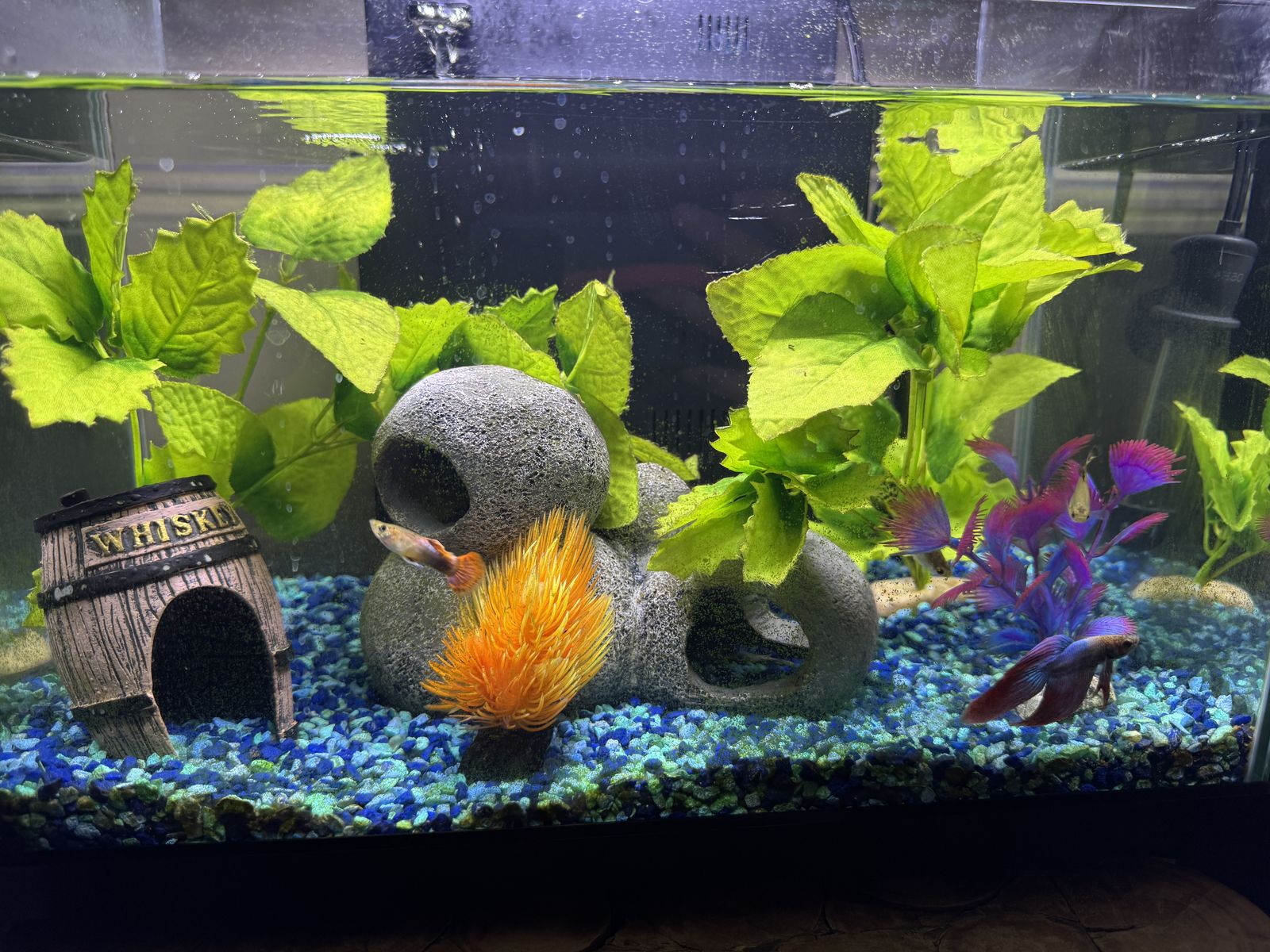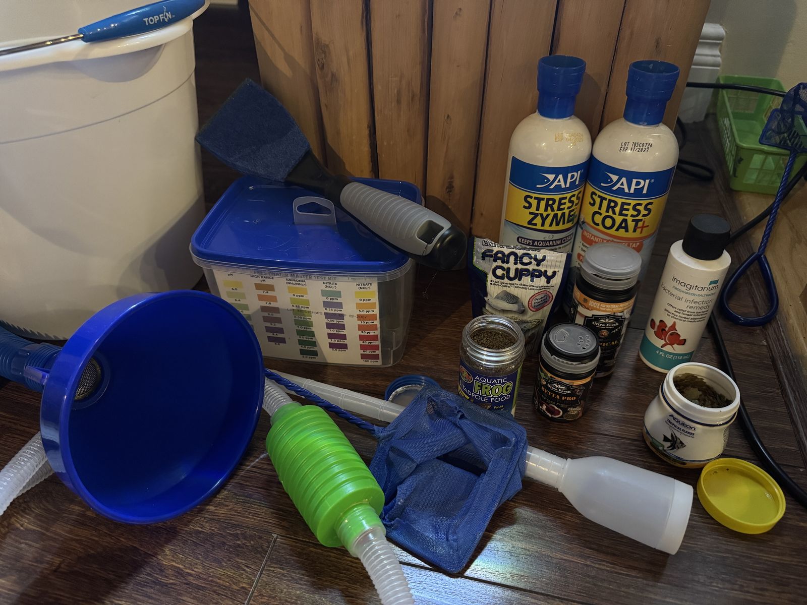 PayPalBeautiful Beta and guppies Tons of food for tropical fish, beta, frogs, etc. chemicals to keep clean, etc Tools for cleaning 10 gallon tank