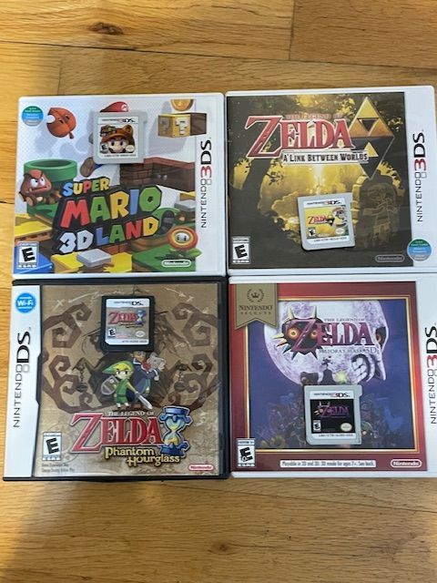 VenmoRare find! Nintendo 3DS console (refurbished), in very good condition, including four games still in their original boxes: Zelda Phantom Hourglass (with instruction manual), Zelda Majora's Mask, Super Mario 3D Land, Zelda A Link Between Worlds. Includes stylus.