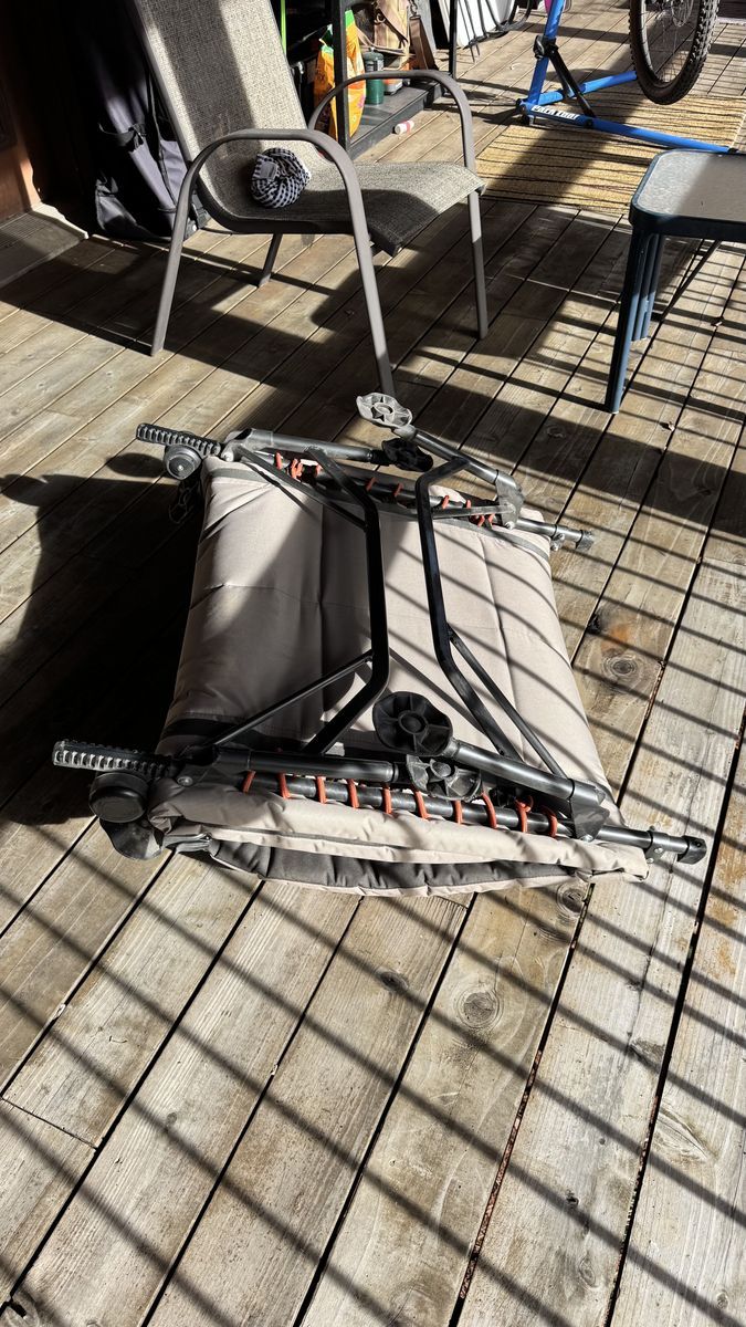 Used this on long solo trips mainly in the bed of my tacoma or in a tent. If you are looking for a comfort camping option this is the one! It's real nice that you can fully recline it, or sit it upright like a chair. I'm moving and wont have the space to store it. I can accept credit cards, cash, or venmo