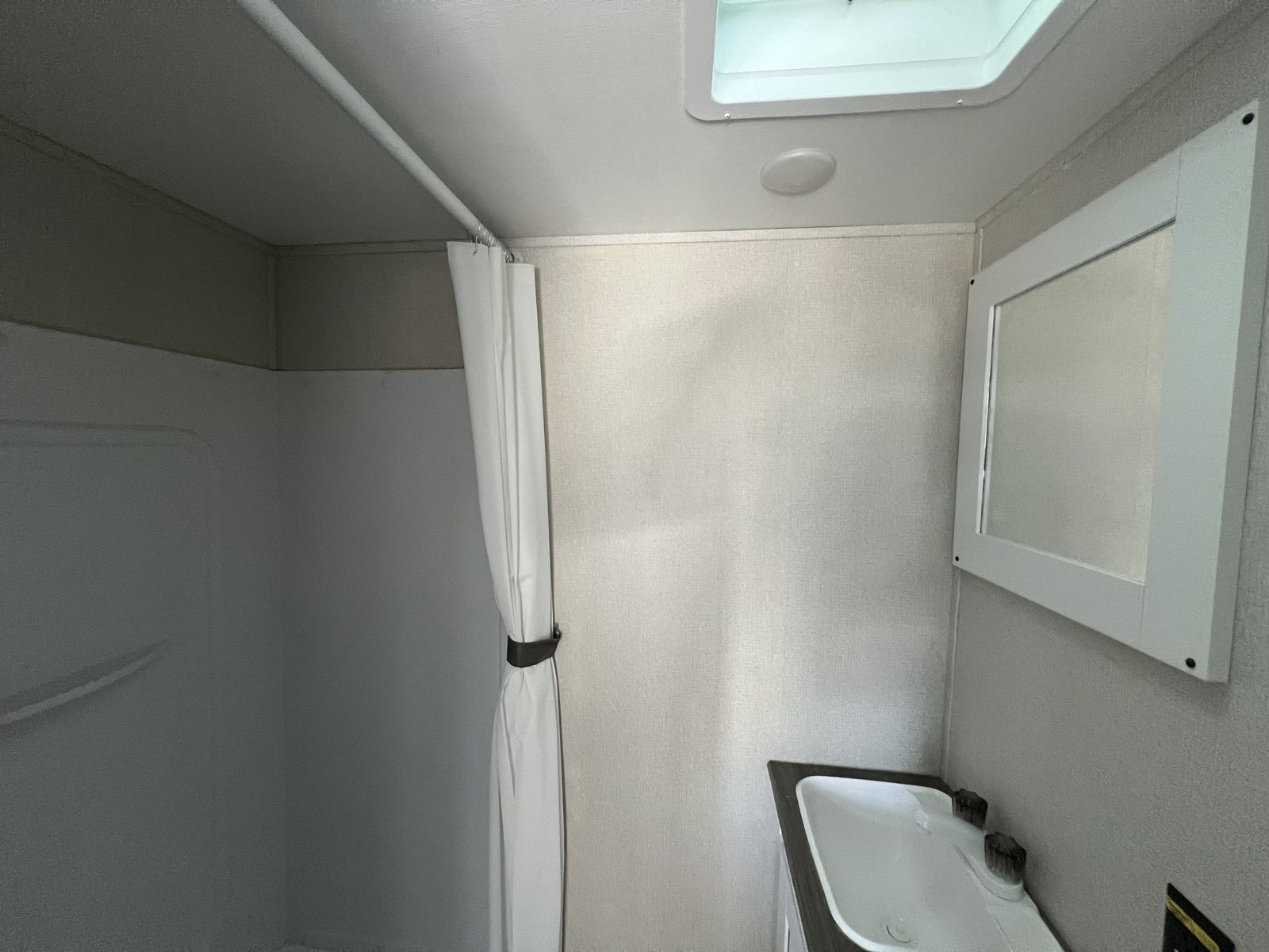 This bunkhouse sleeps up to 6. KEEPS IT SUPER SIMPLE WITH NO SLIDEOUT. It does come with solar! 1 YEAR WARRANTY.